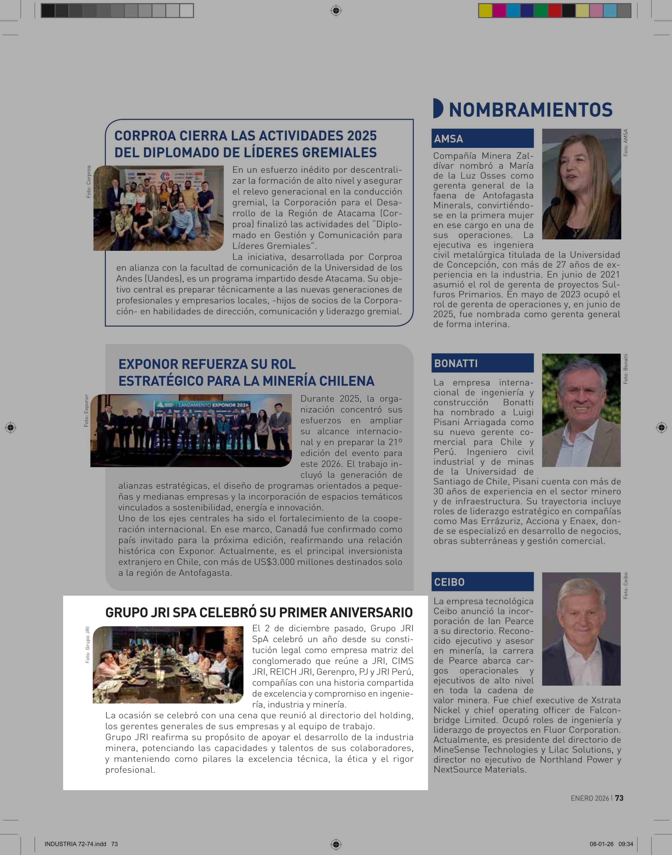 GRUPO JRI SPA CELEBRÓ SU PRIMER ANIVERSARIO 12-01-2026 Revista Nueva Minería & Energía |