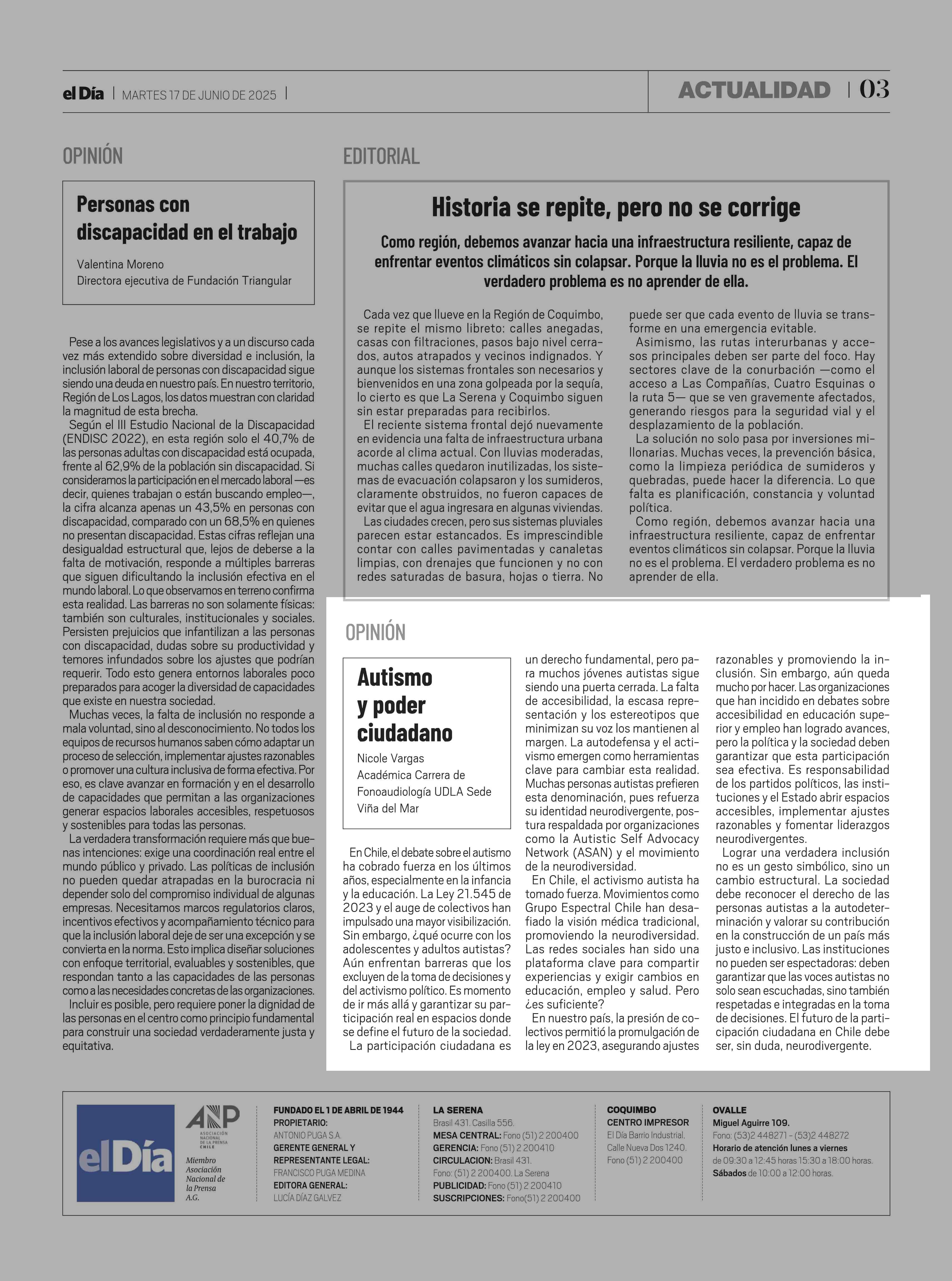 COLUMNAS DE OPINIÓN: Autismo y poder ciudadano 17-06-2025 El Día |