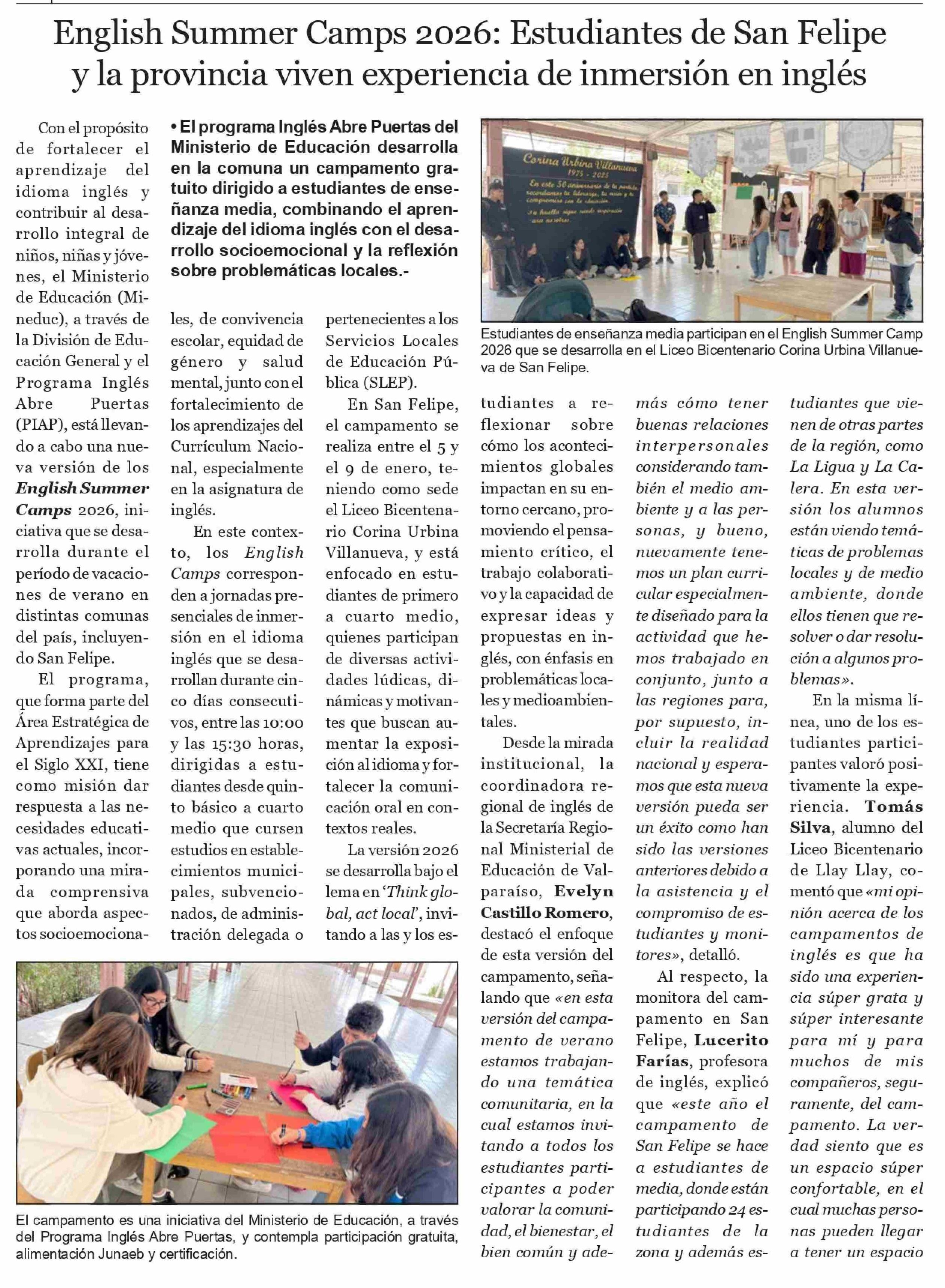 | Título: | English Summer Camps 2026: Estudiantes de San Felipe y la provincia viven experiencia de inmersión en inglés |
