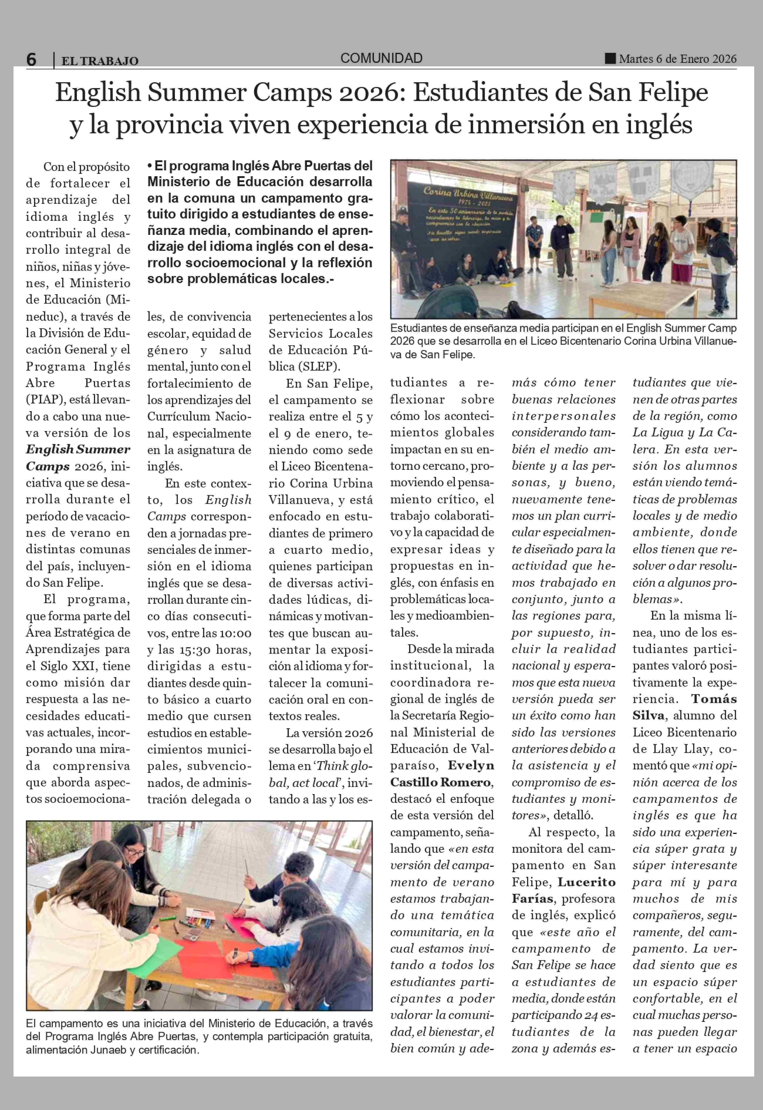 English Summer Camps 2026: Estudiantes de San Felipe y la provincia viven experiencia de inmersión en inglés 06-01-2026 El Trabajo |