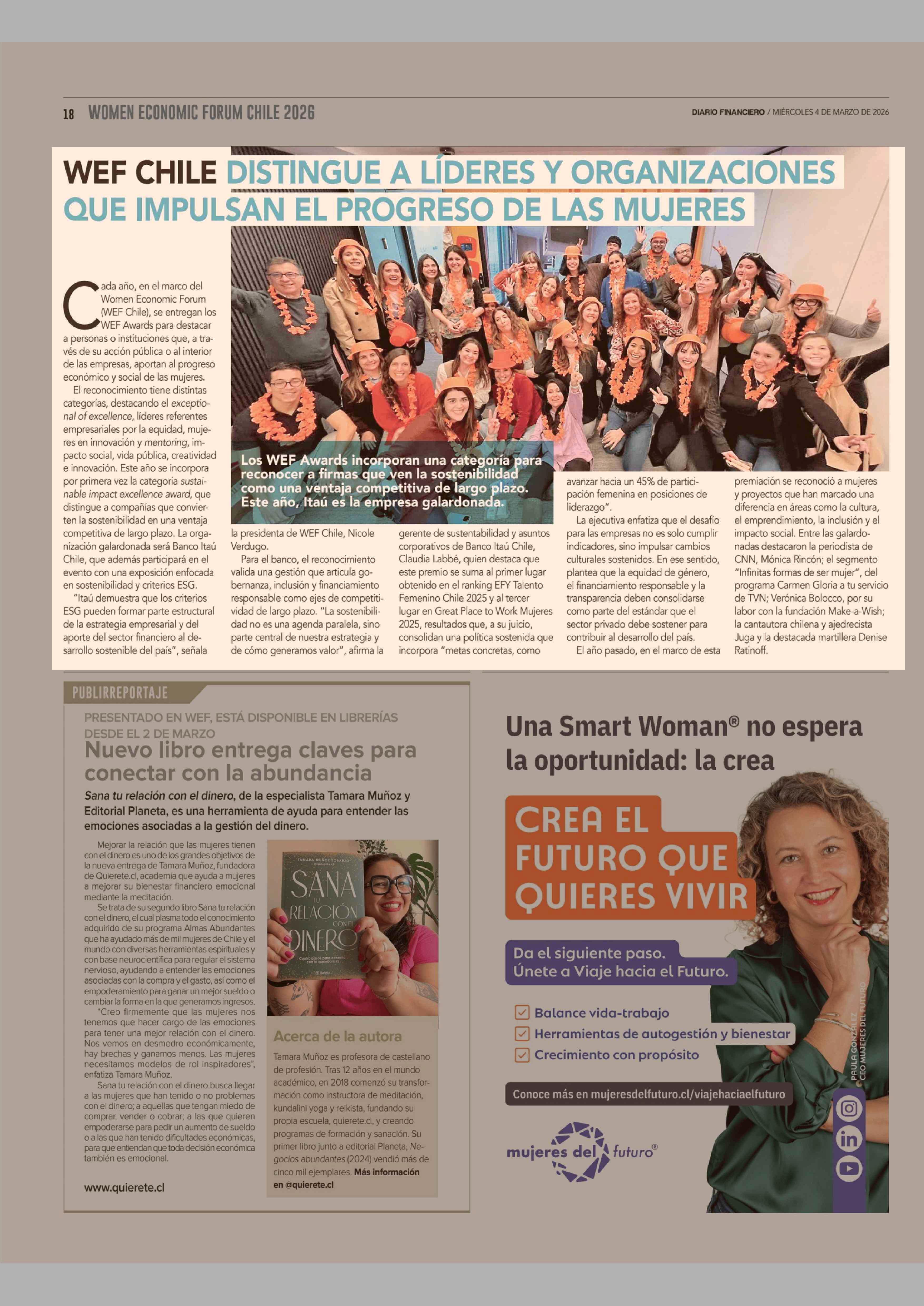 WEF CHILE DISTINGUE A LÍDERES Y ORGANIZACIONES QUE IMPULSAN EL PROGRESO DE LAS MUJERES 04-03-2026 Diario Financiero |