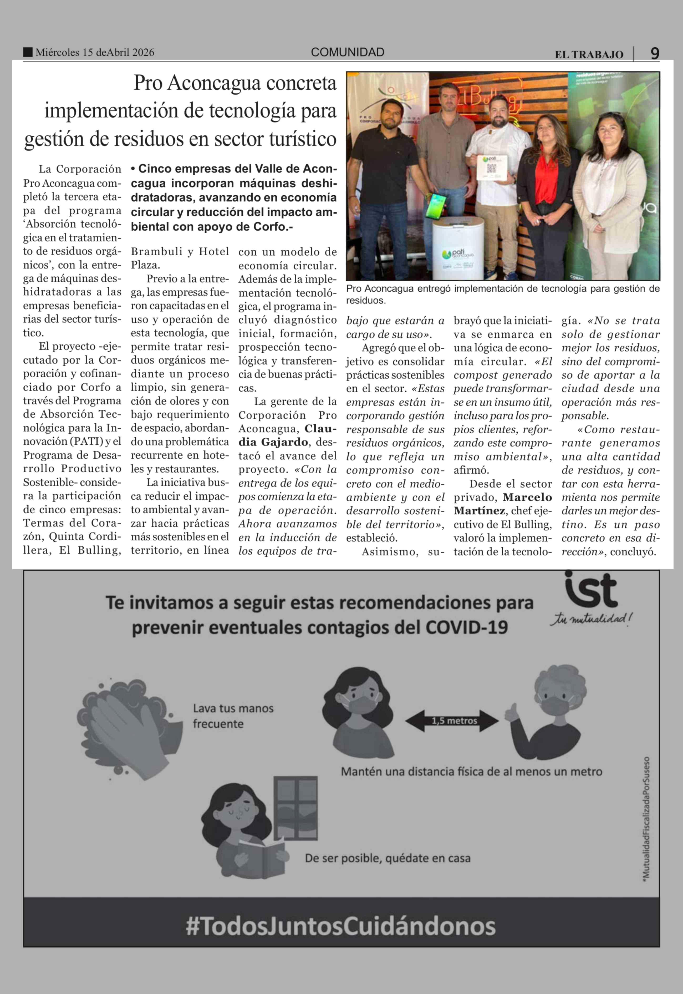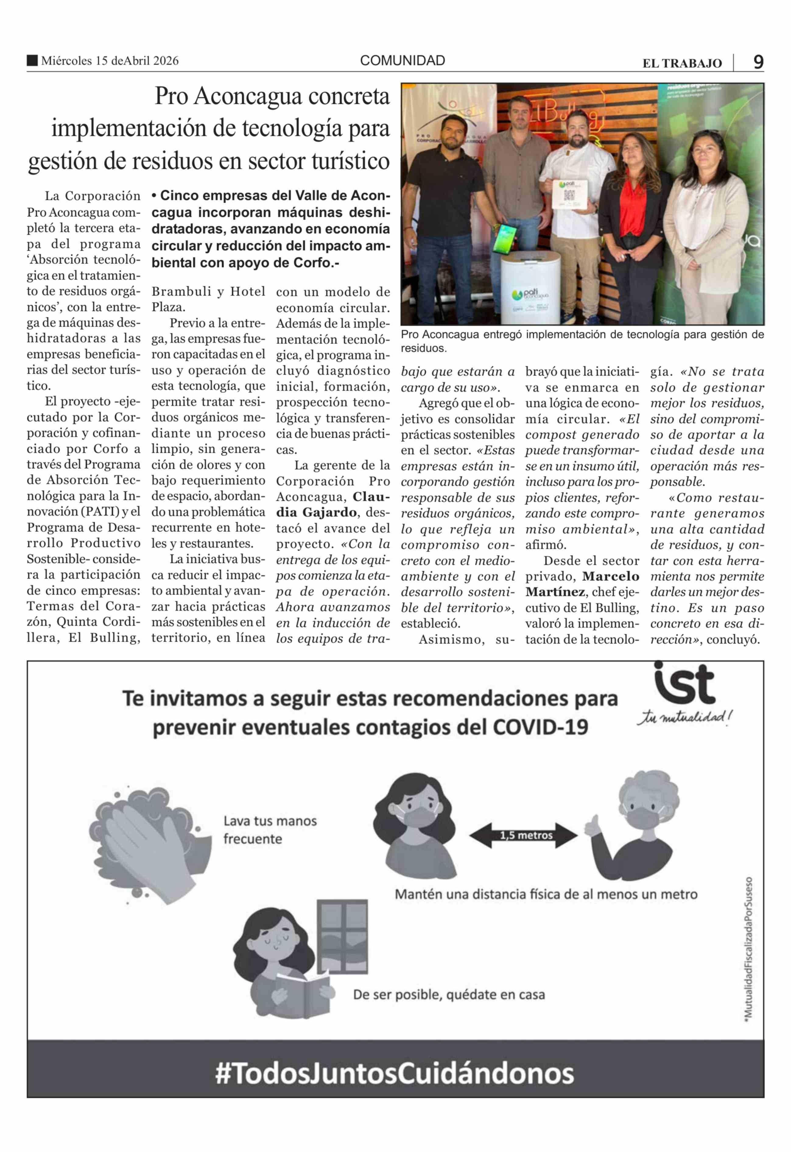 Pro Aconcagua concreta implementación de tecnología para gestión de residuos en sector turístico 15-04-2026 El Trabajo |
