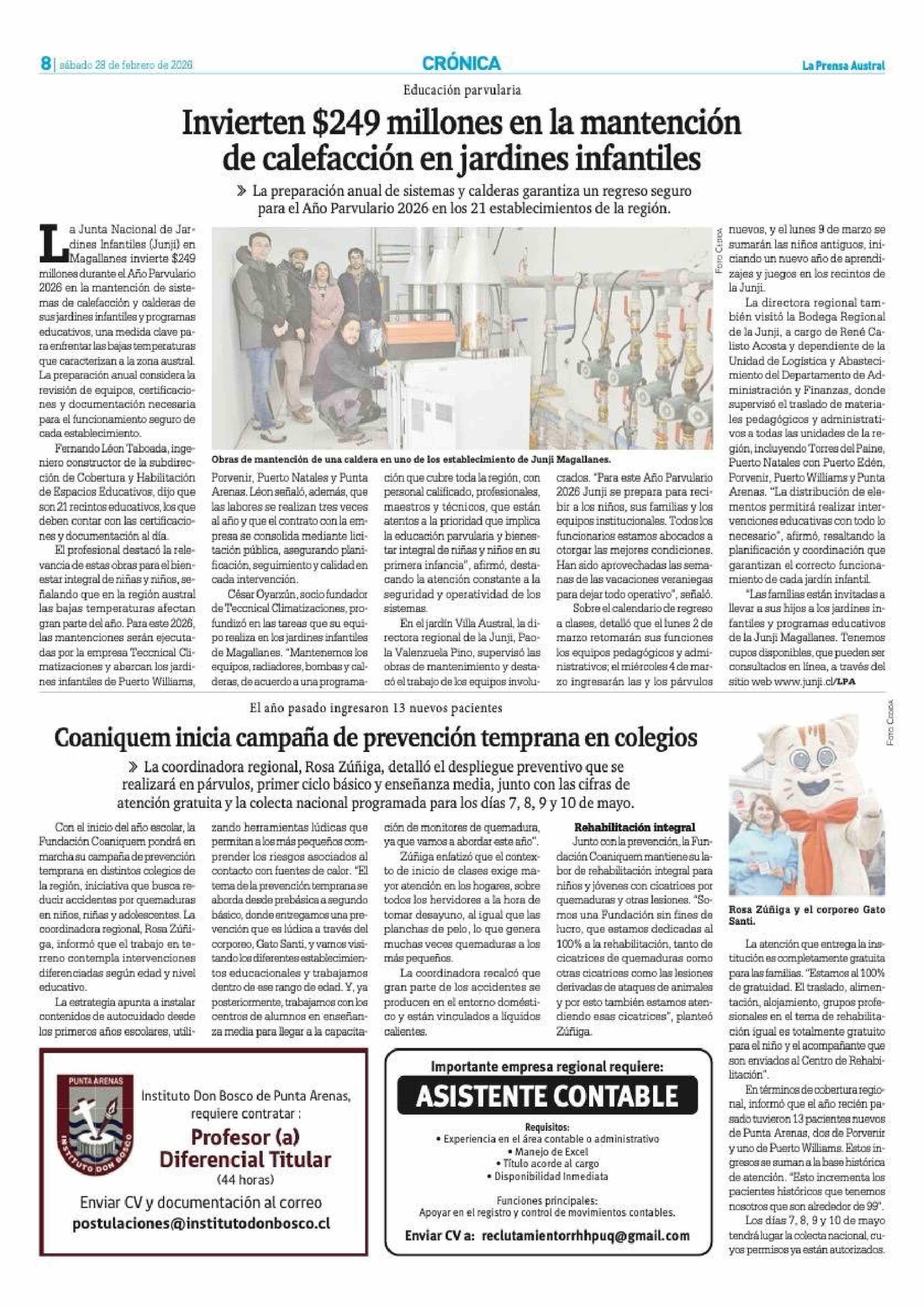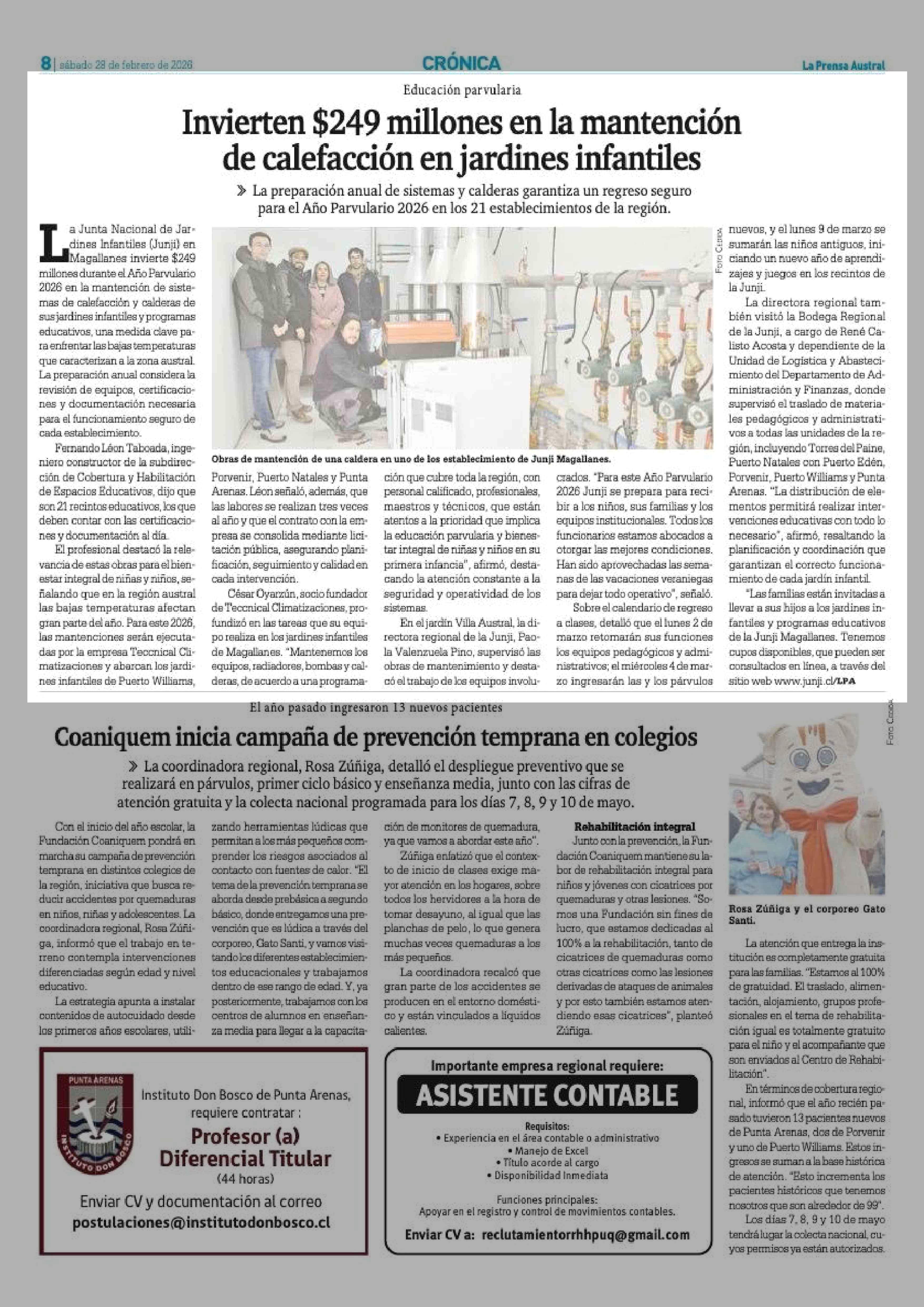 Invierten $249 millones en la mantención de calefacción en jardines infantiles 28-02-2026 La Prensa Austral |