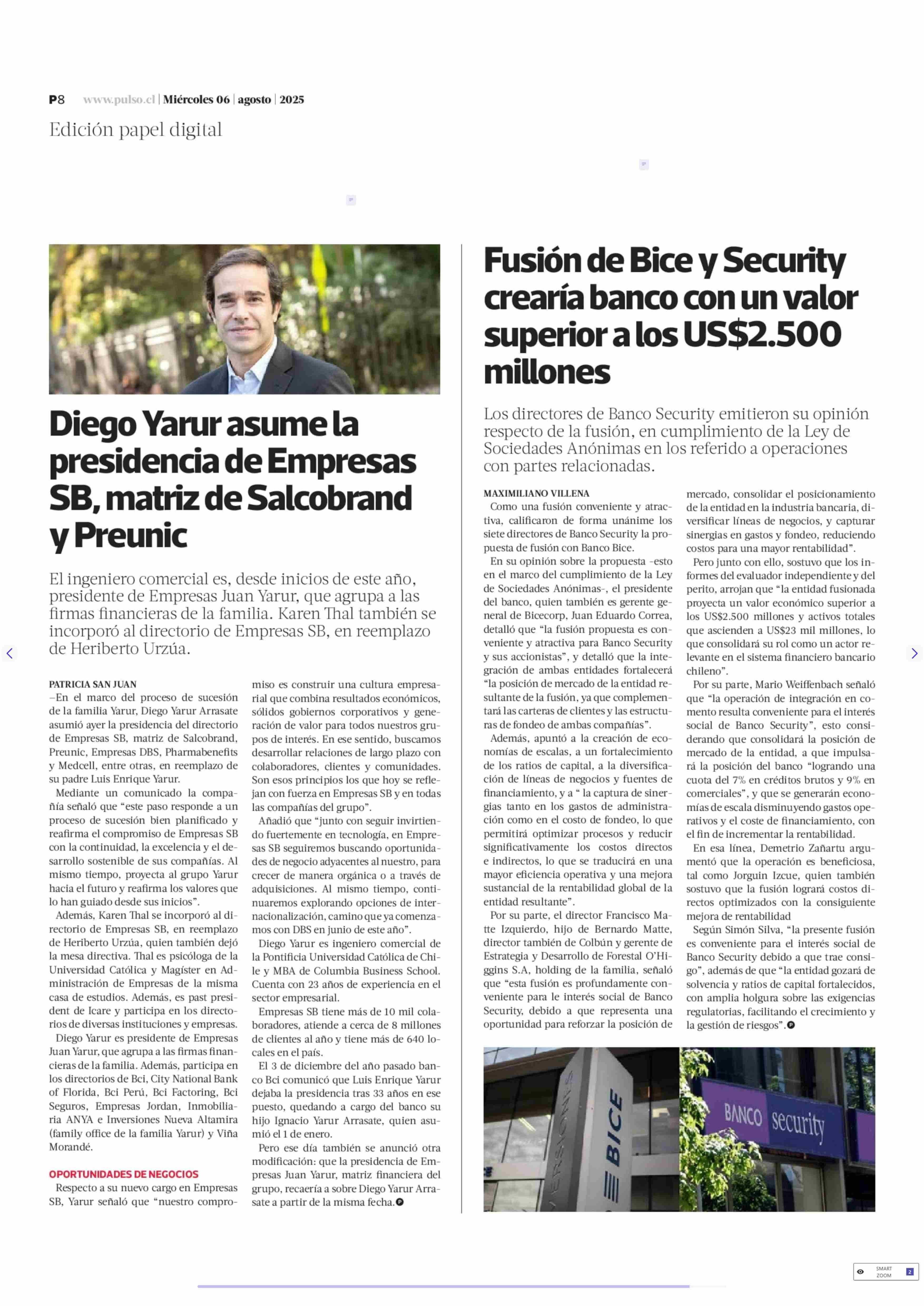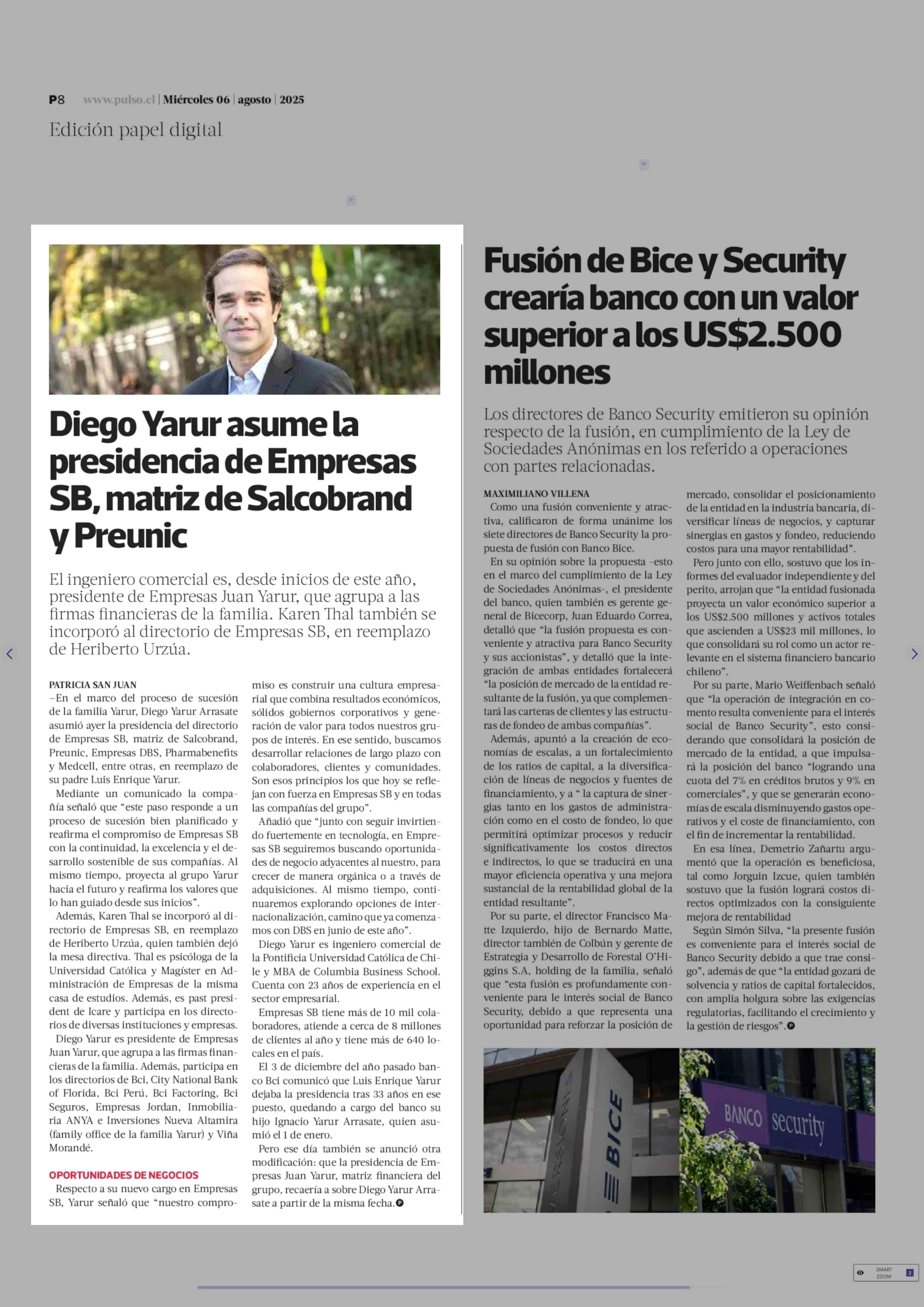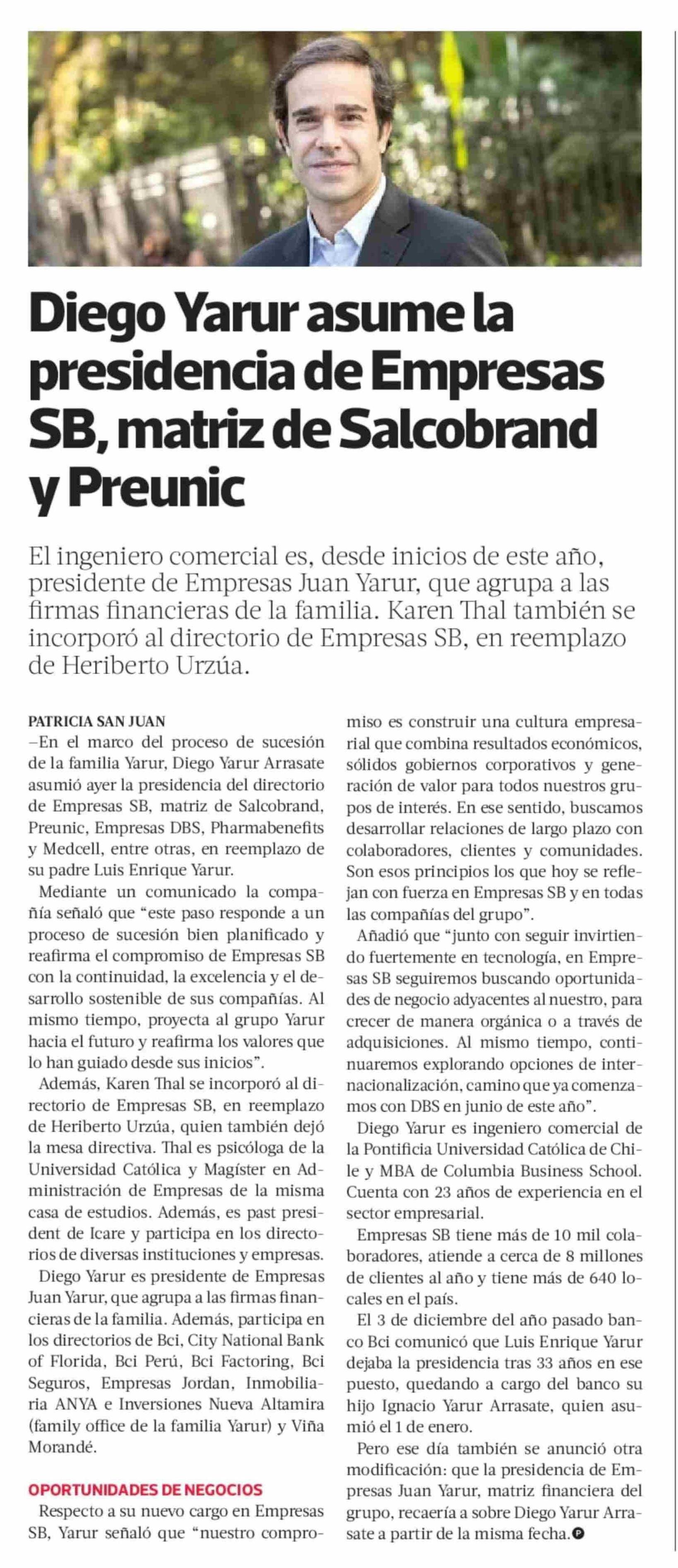 Diego Yarur asume la presidencia de Empresas SB, matriz de Salcobrand y Preunic 06-08-2025 La Tercera |