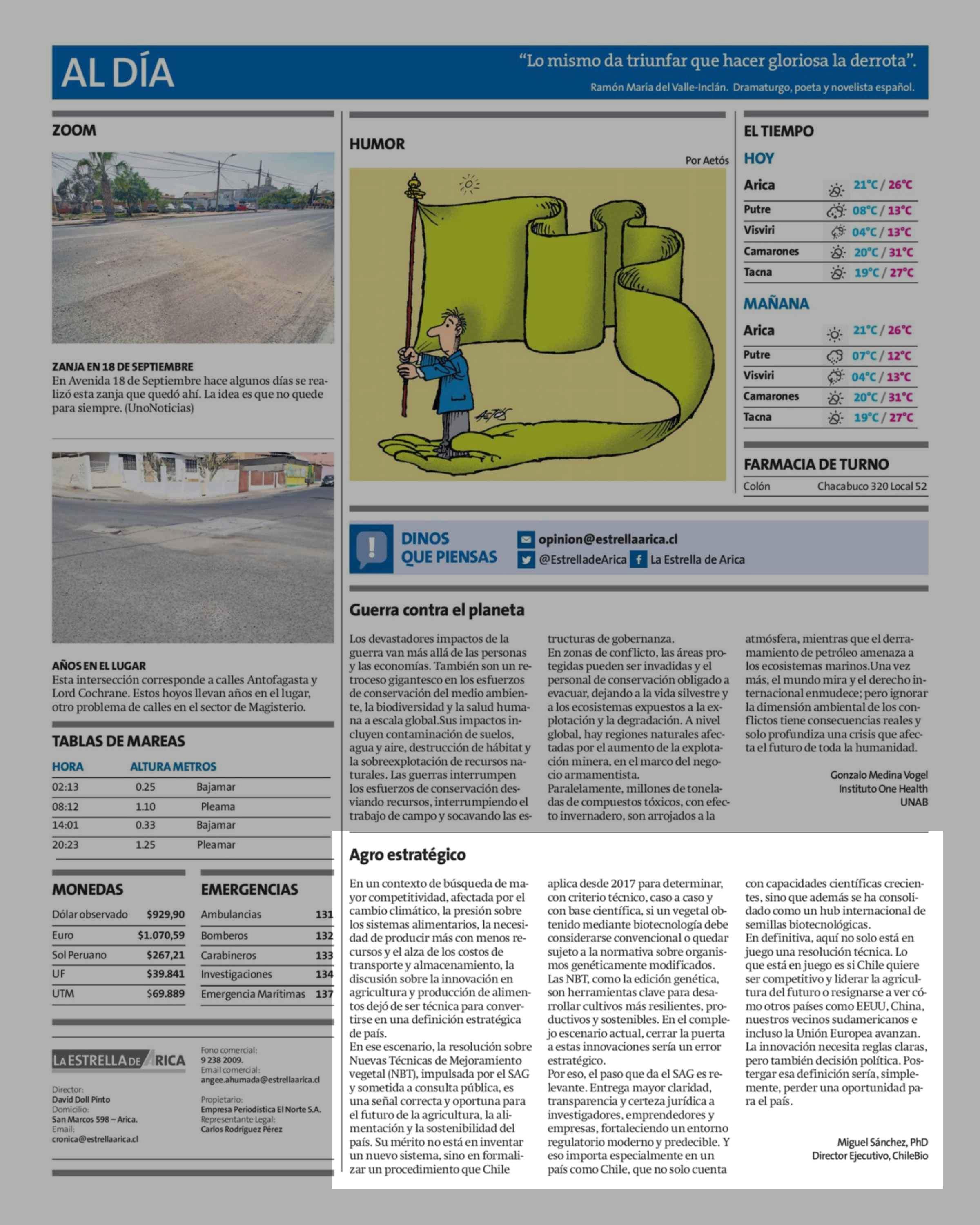Columnas de Opinión: Agro estratégico 31-03-2026 La Estrella de Arica |