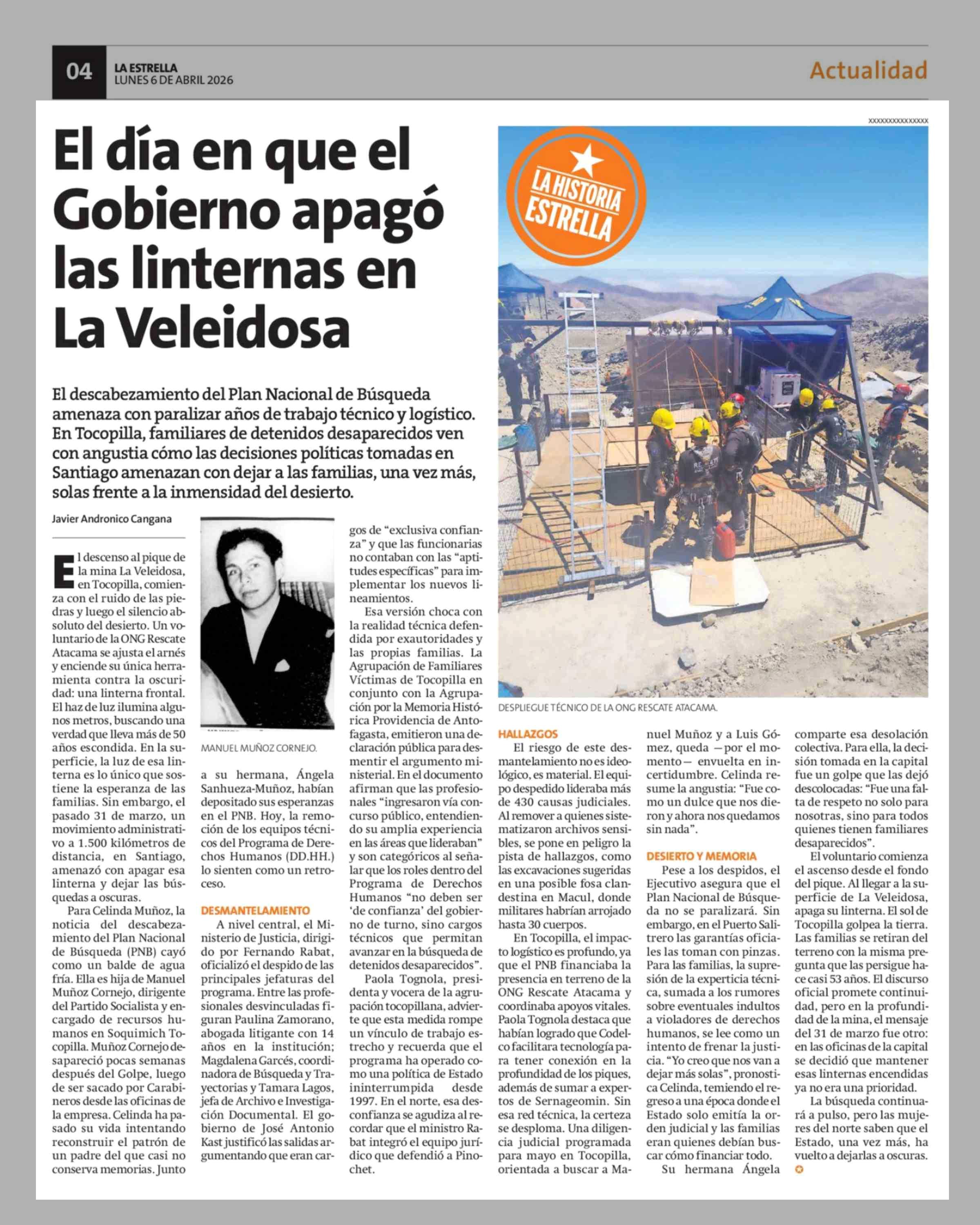 El día en que el Gobierno apagó las linternas en La Veleidosa 06-04-2026 La Estrella de Antofagasta |