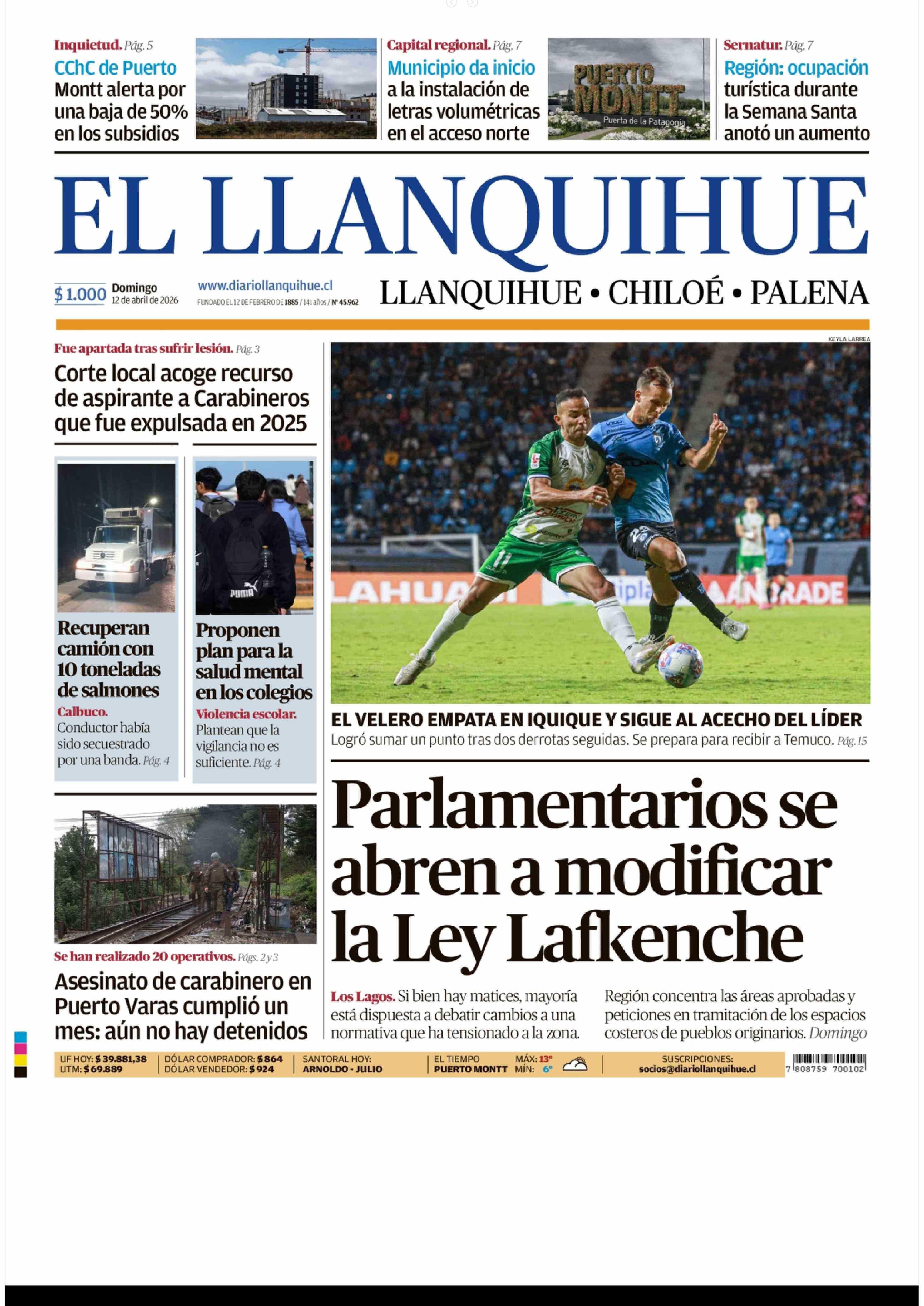 | Fecha: | 12-04-2026 | Sector: | Portada | Región: | Región de Los Lagos |