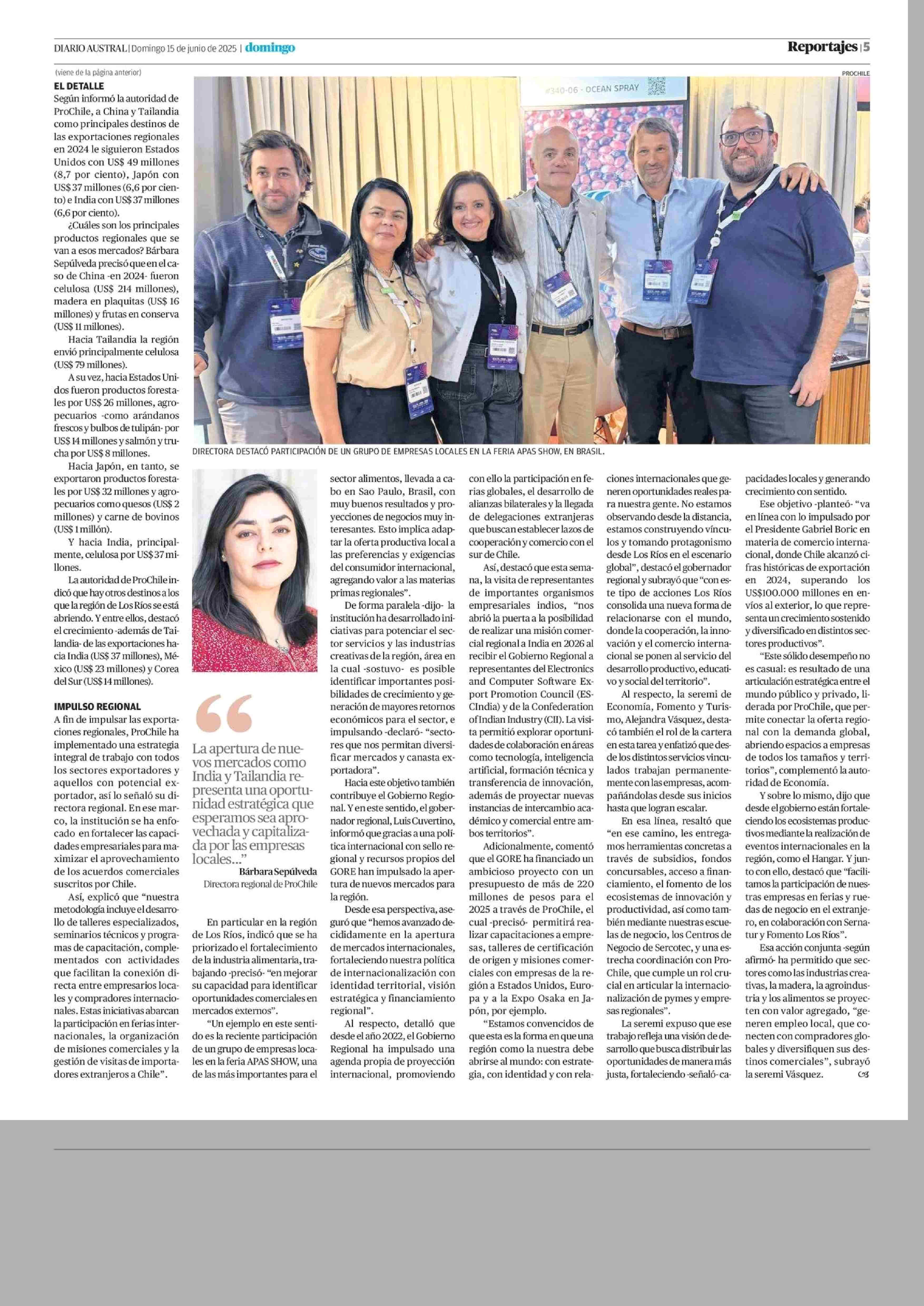 China y Tailandia: Principales destinos de las exportaciones regionales 15-06-2025 Diario Austral Región de Los Ríos |