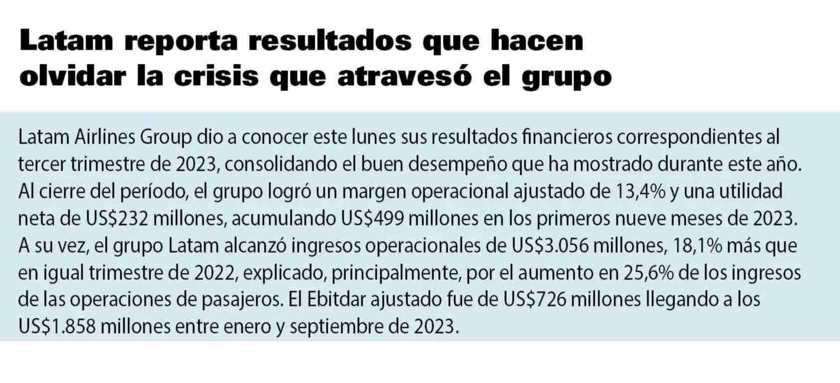 Latam reporta resultados que hacen olvidar la crisis que atravesó el grupo 31-10-2023 Las Últimas Noticias |