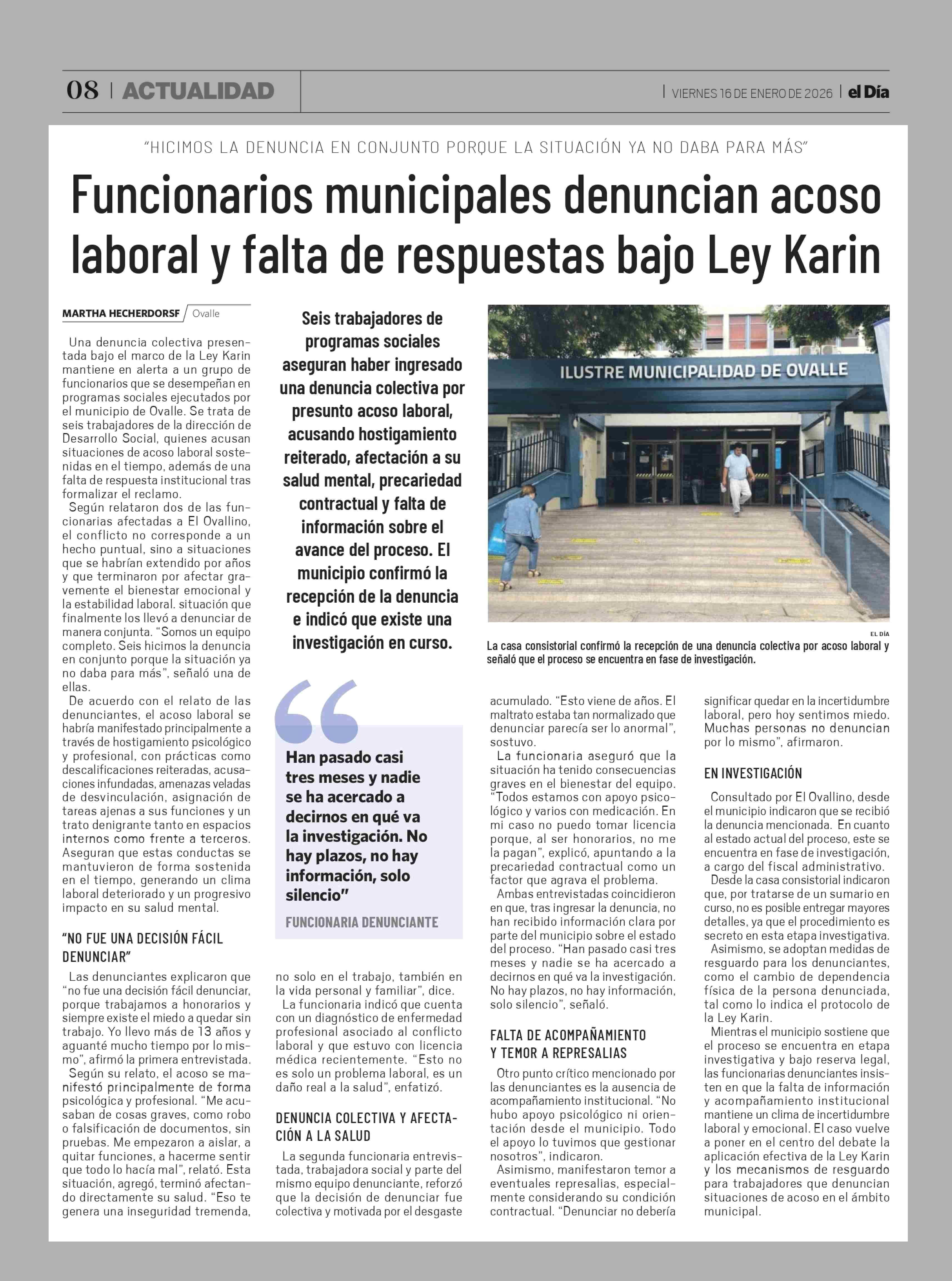 Título: Funcionarios municipales denuncian acoso laboral y falta de respuestas bajo Ley Karin