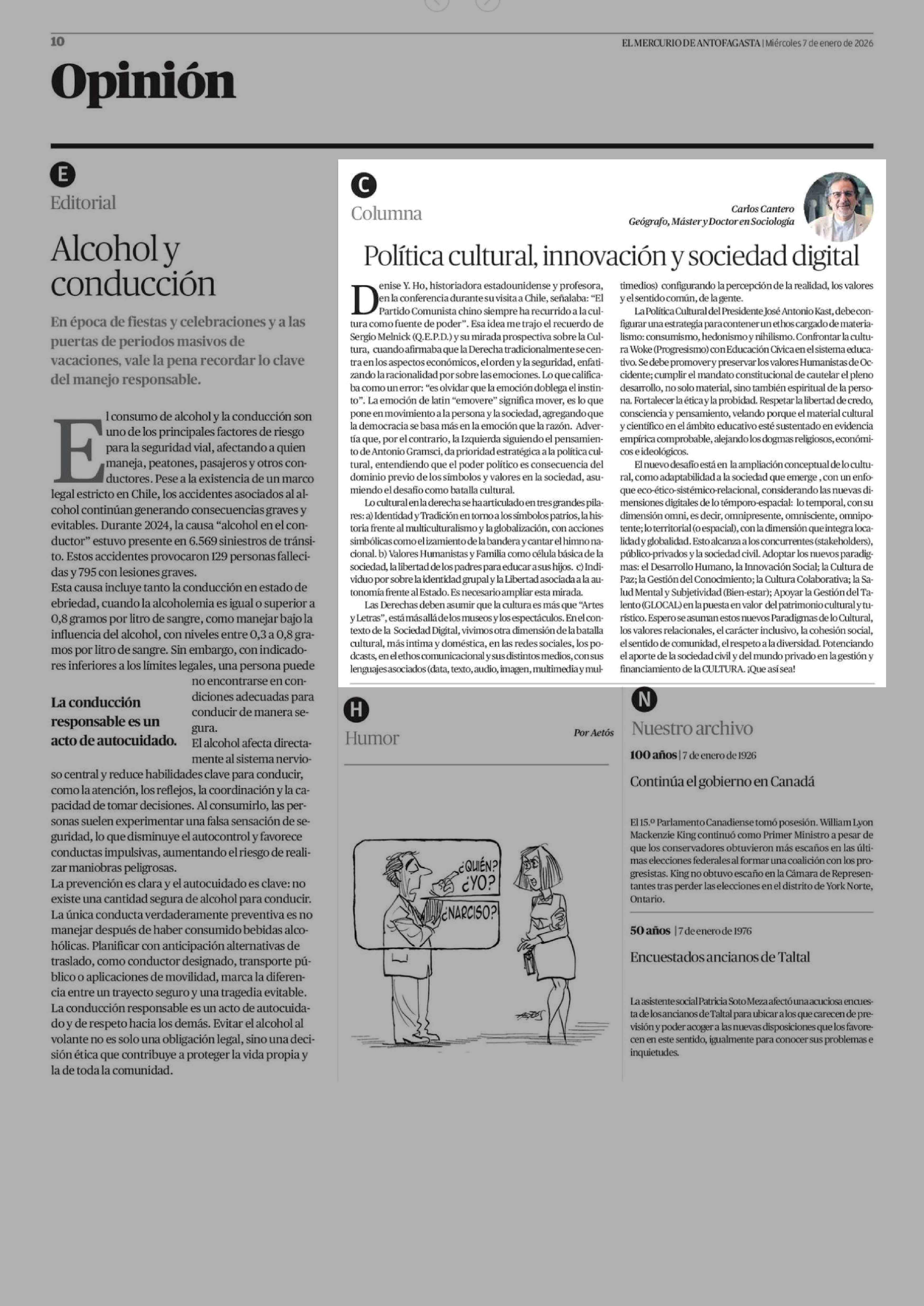 Fecha: 07-01-2026 Sector: Columnas de Opinión Región: Región de Antofagasta