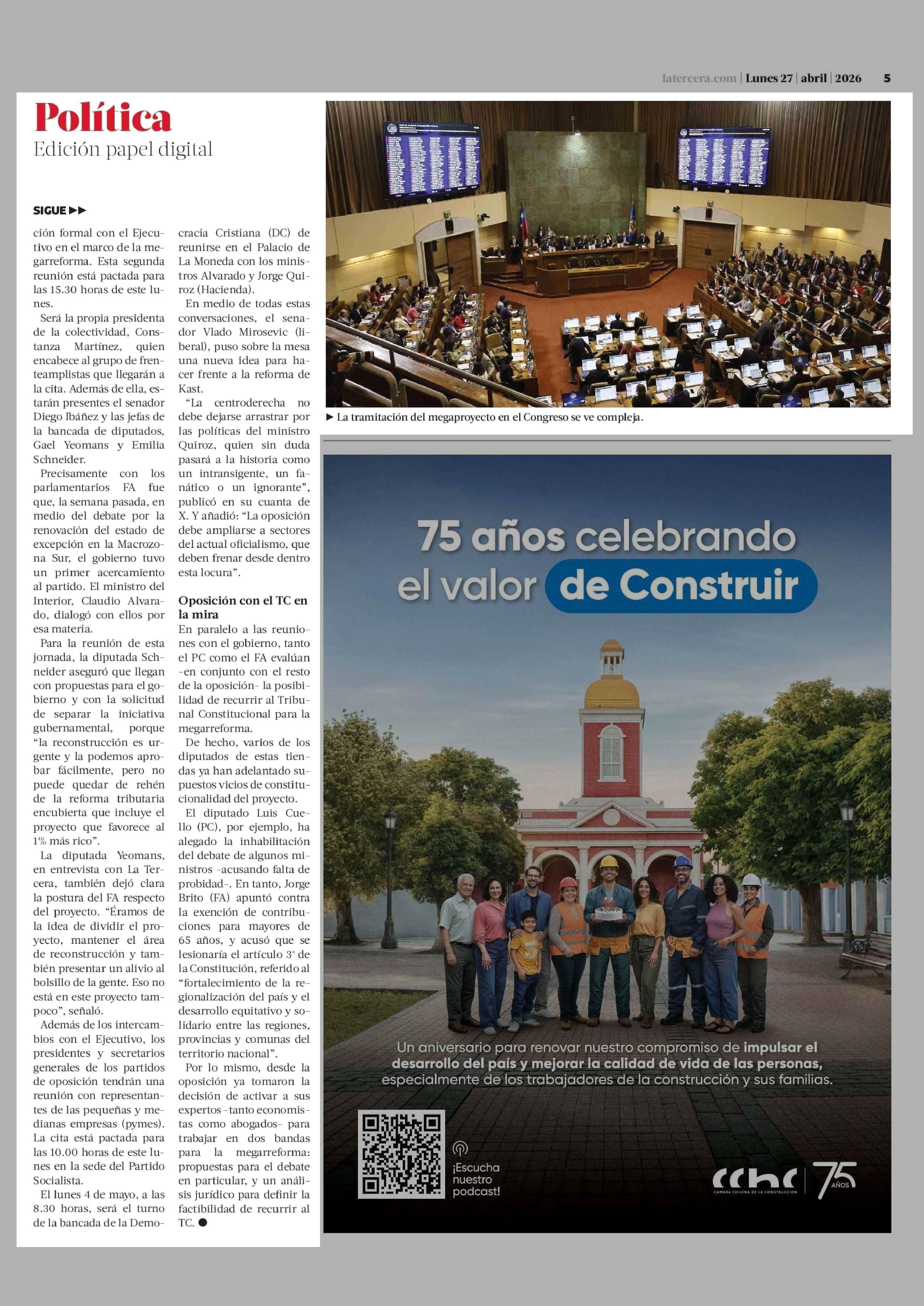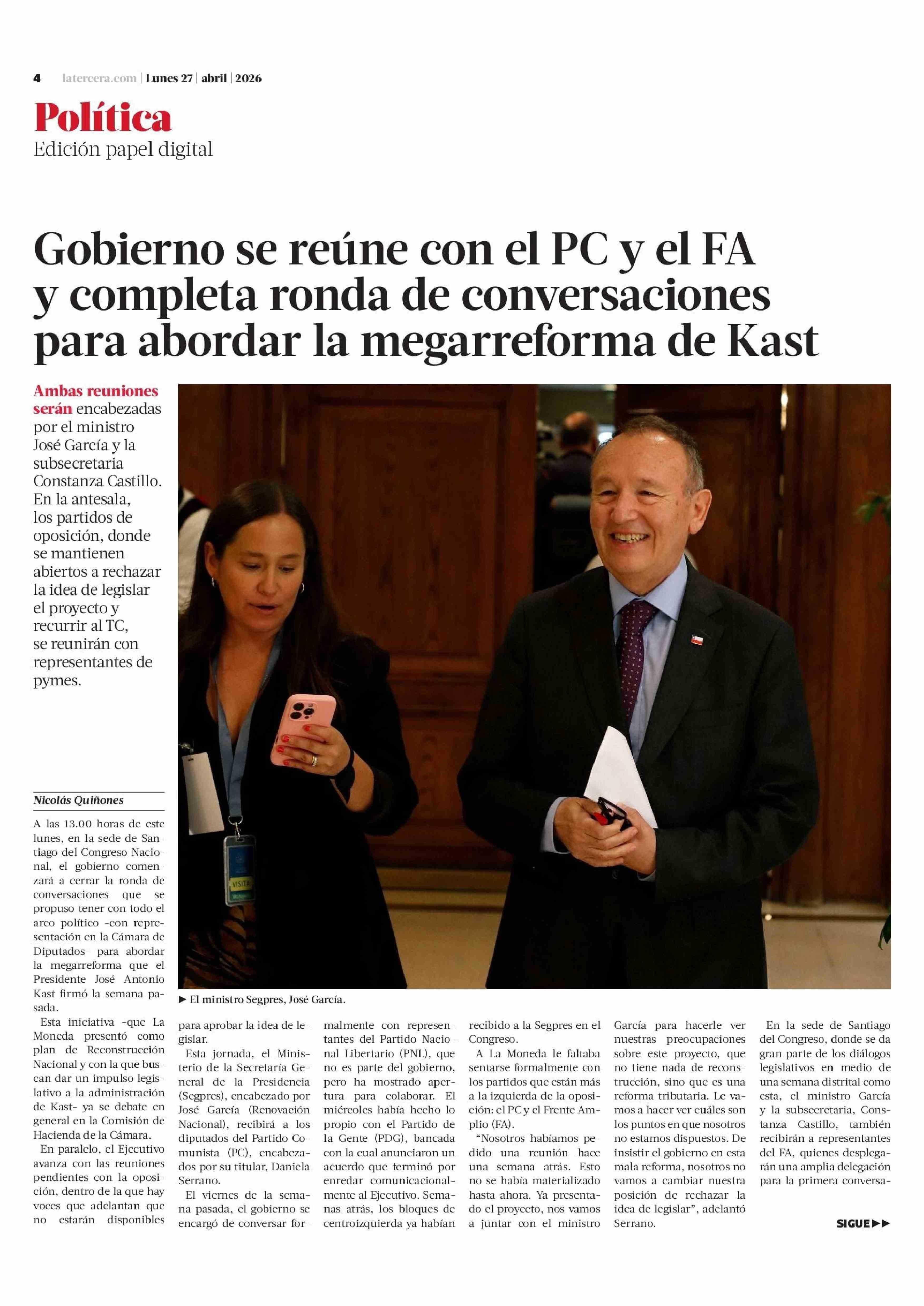 Fuente: La Tercera (La Tercera) Página(s): 4-5