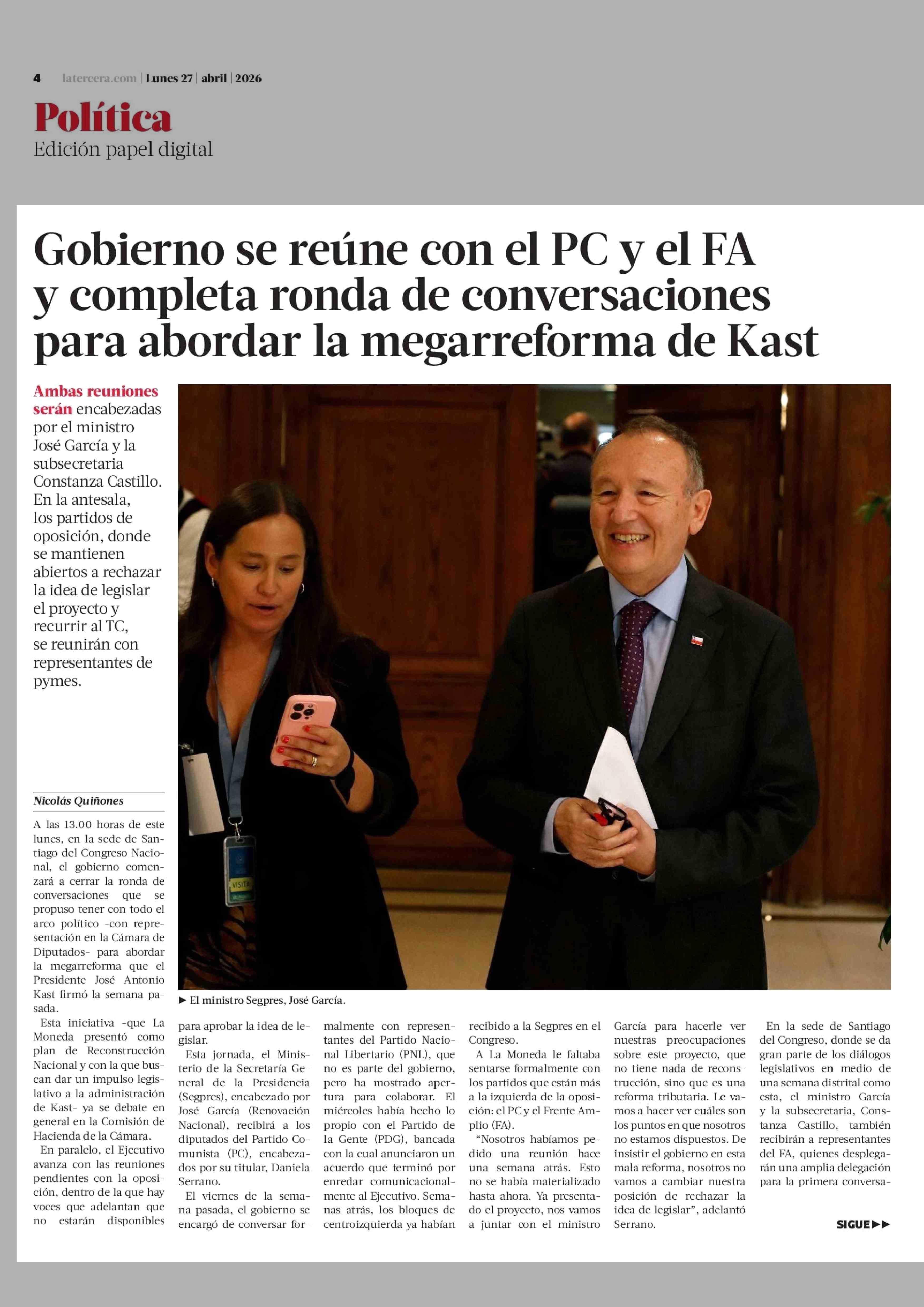 Título: Gobierno se reúne con el PC y el FA y completa ronda de conversaciones para abordar la megarreforma de Kast