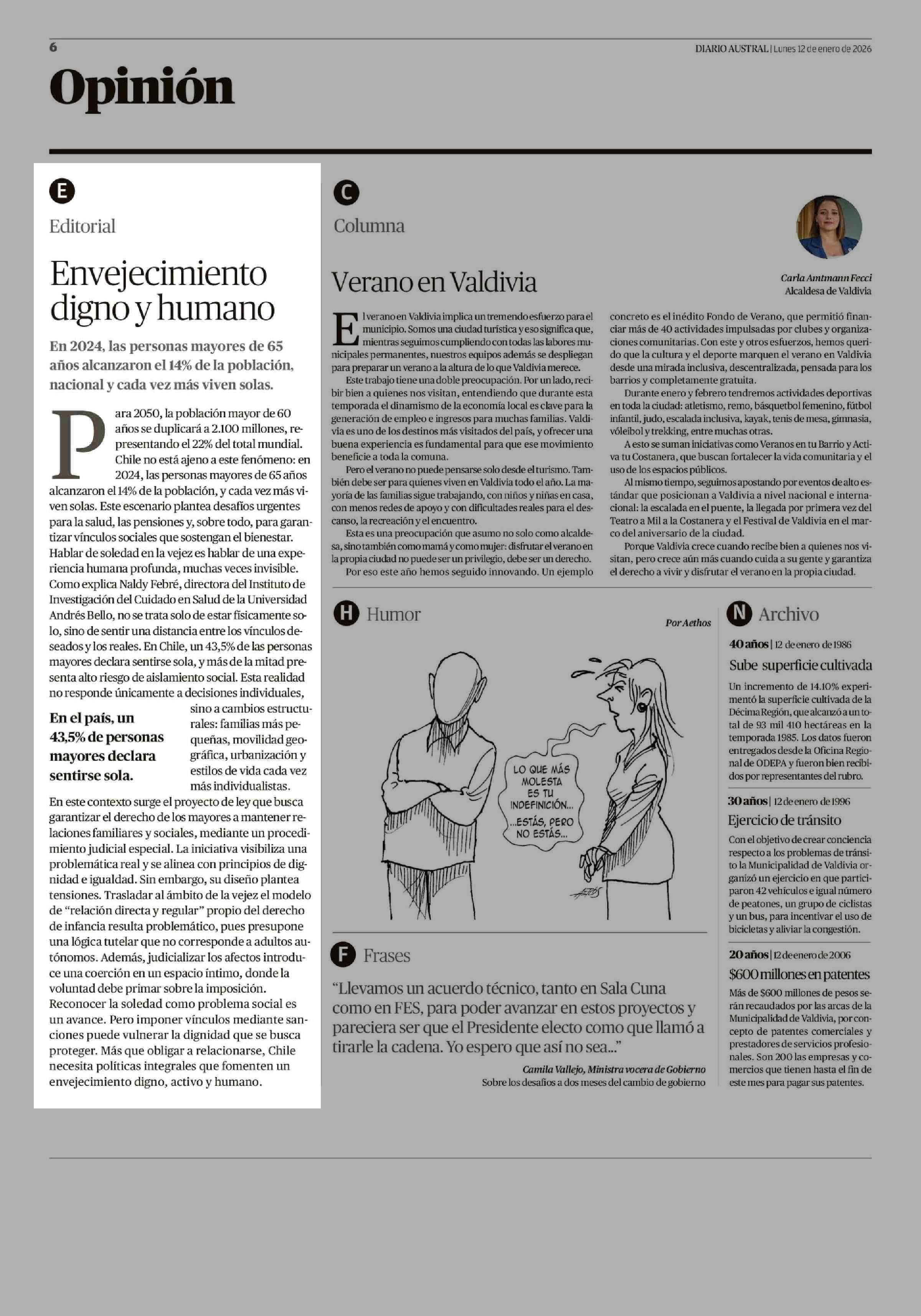| Fecha: | 12-01-2026 | Sector: | Editorial | Región: | Región de Los Ríos |