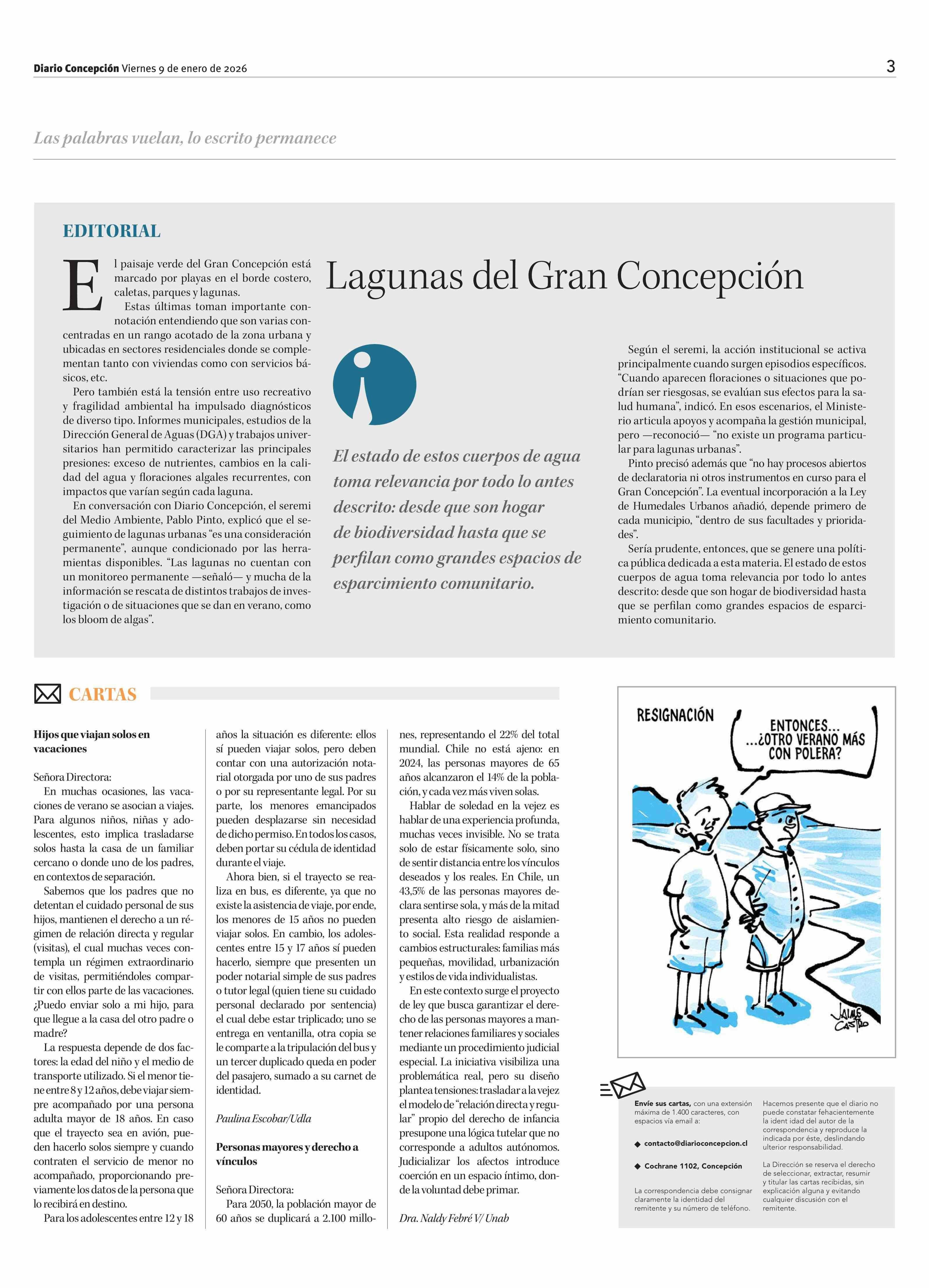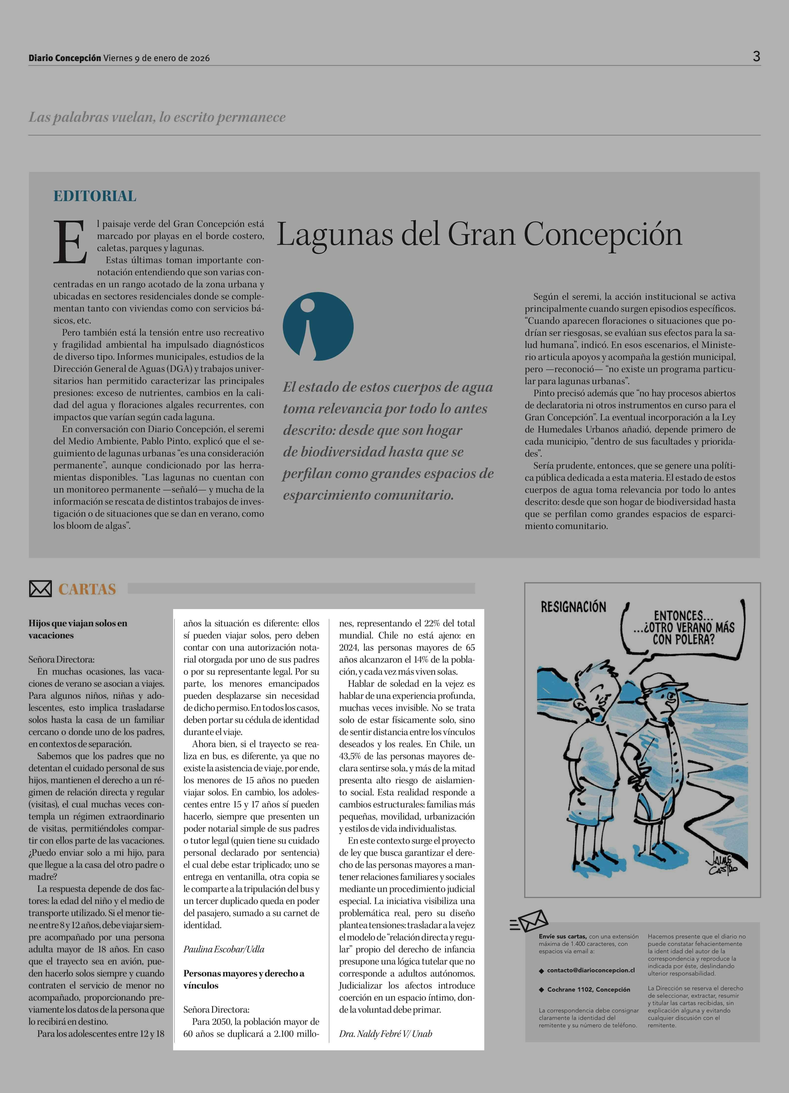 Cartas: Personas mayores y derecho a vínculos 09-01-2026 Diario Concepción |