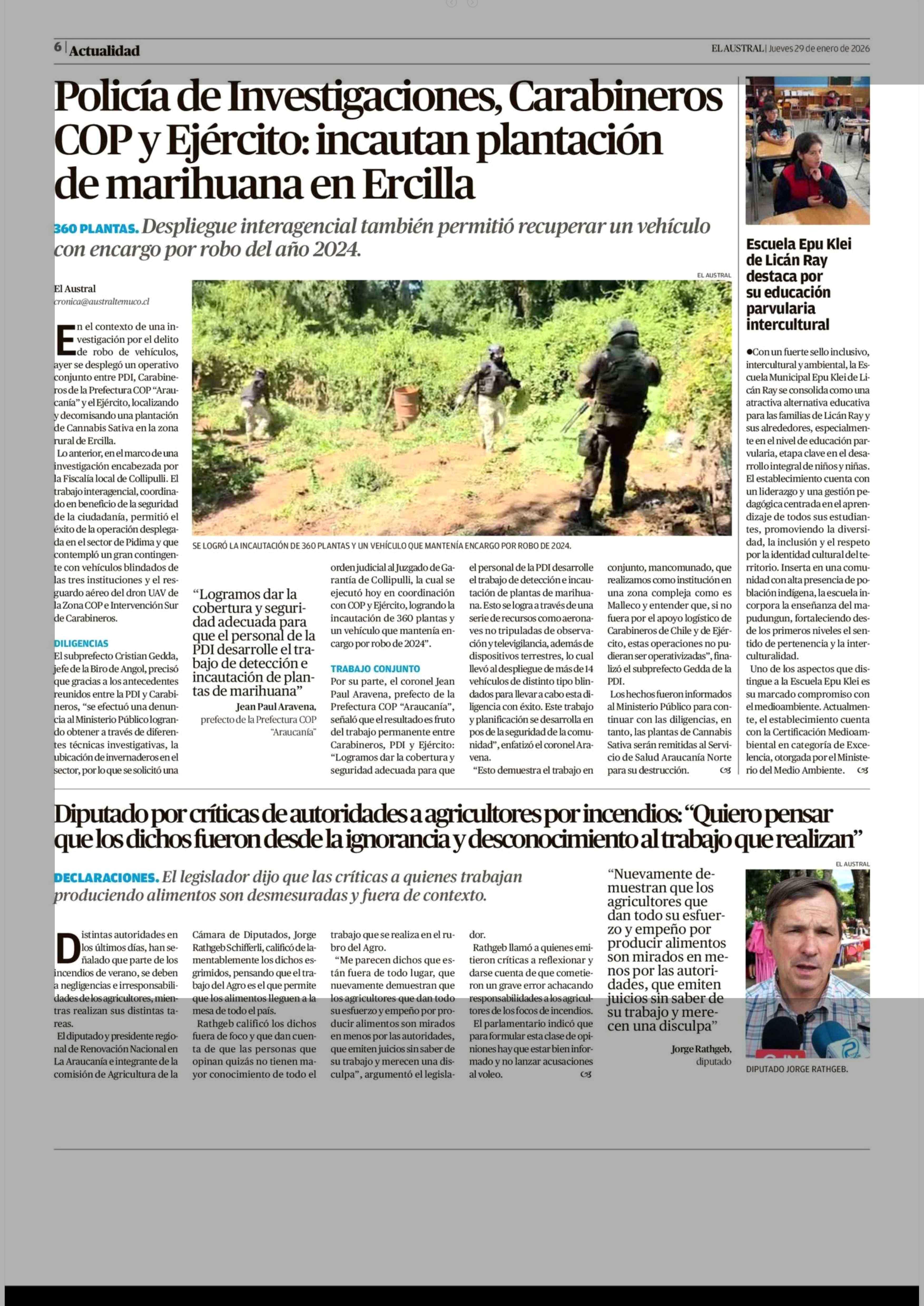 | Fecha: | 29-01-2026 | Sector: | Noticia general | Región: | Región de la Araucanía |