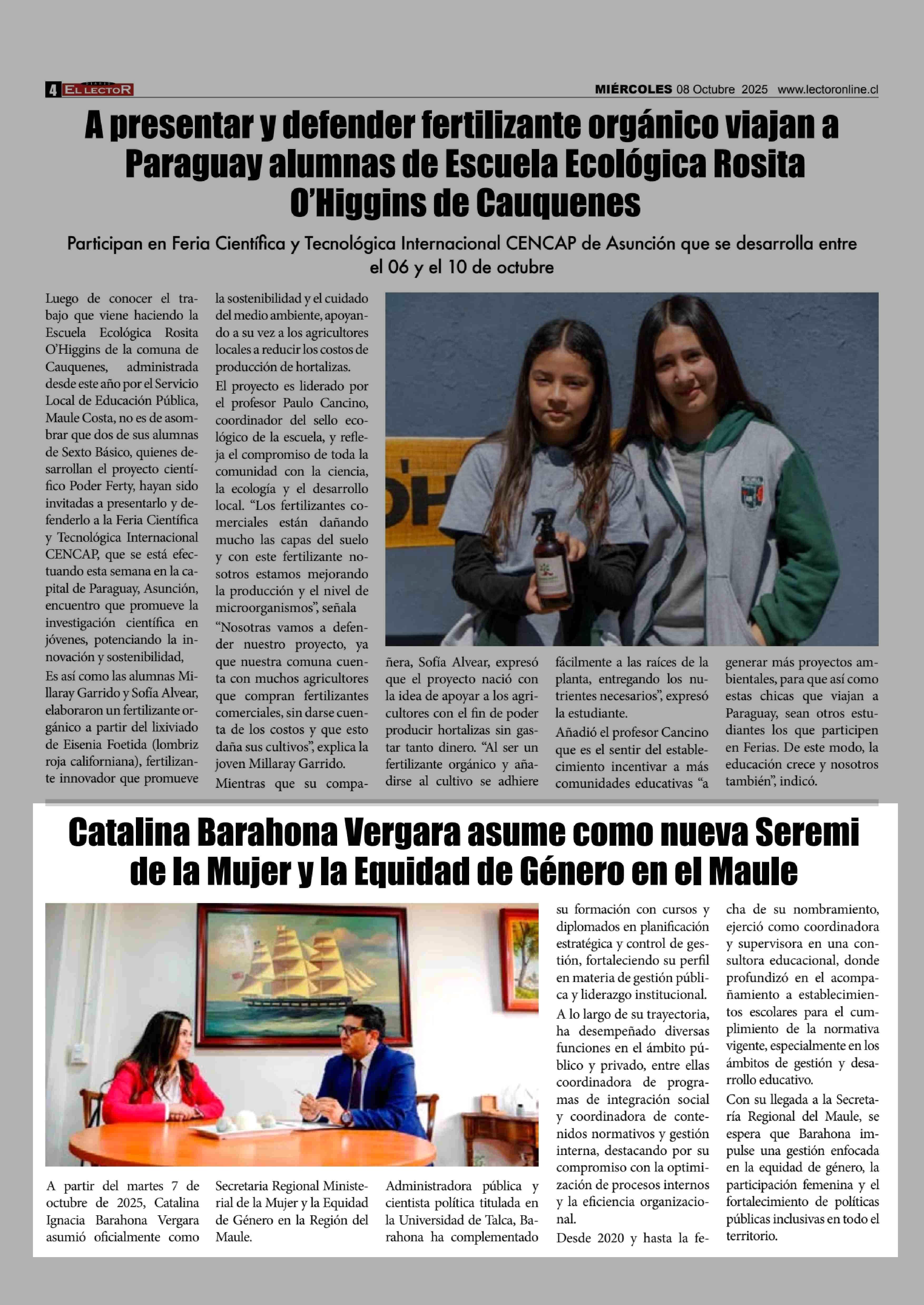 | Catalina Barahona Vergara asume como nueva Seremi de la Mujer y la Equidad de Género en el Maule 08-10-2025 El Lector |
