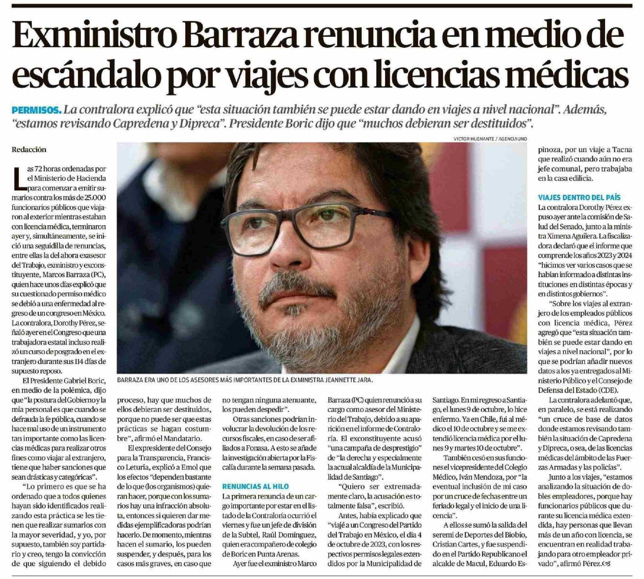 Exministro Barraza renuncia en medio de escándalo por viajes con licencias médicas 27-05-2025 Crónica de Chillán |