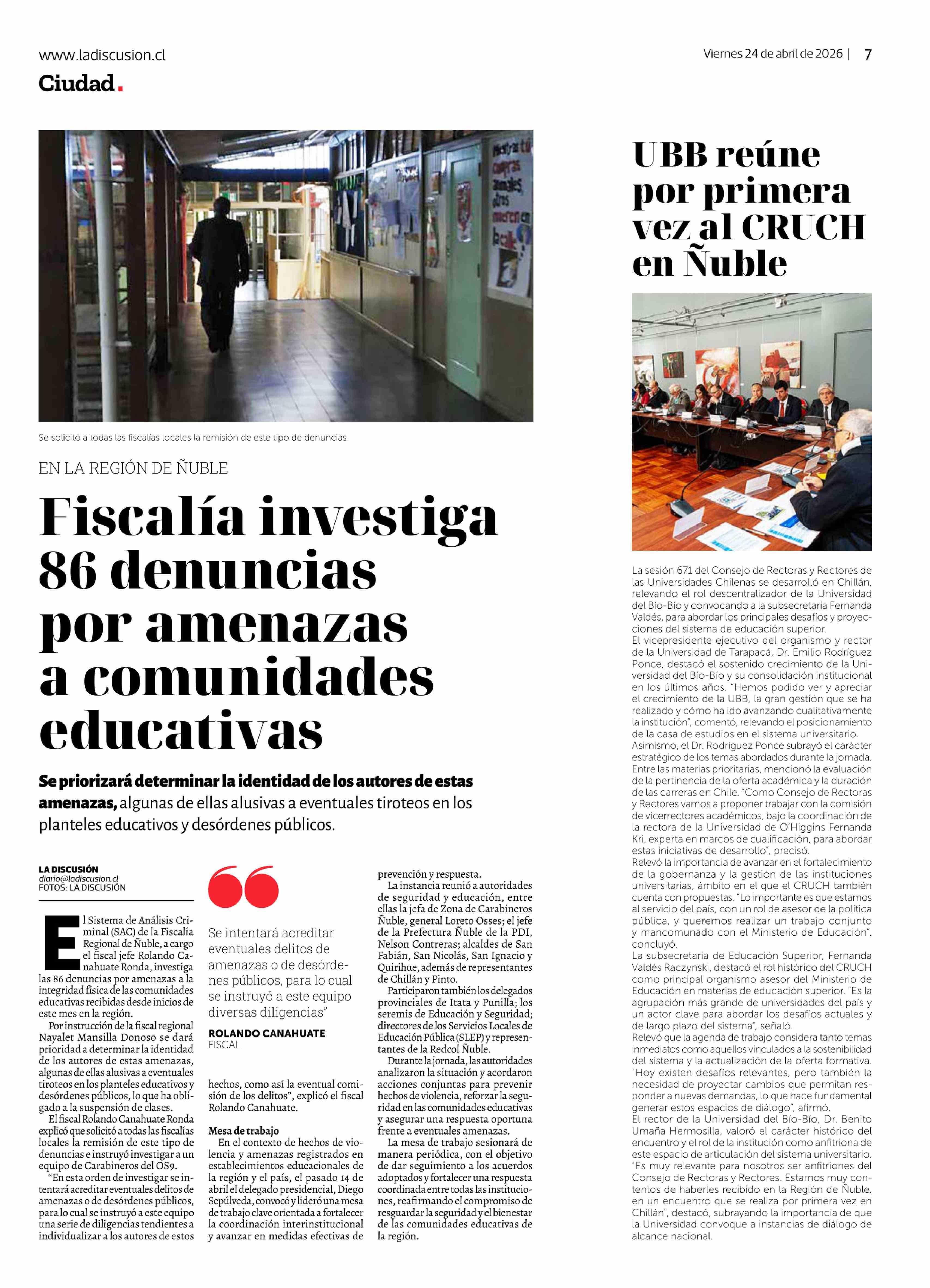 UBB reúne por primera vez al CRUCH en Ñuble 24-04-2026 La Discusión |