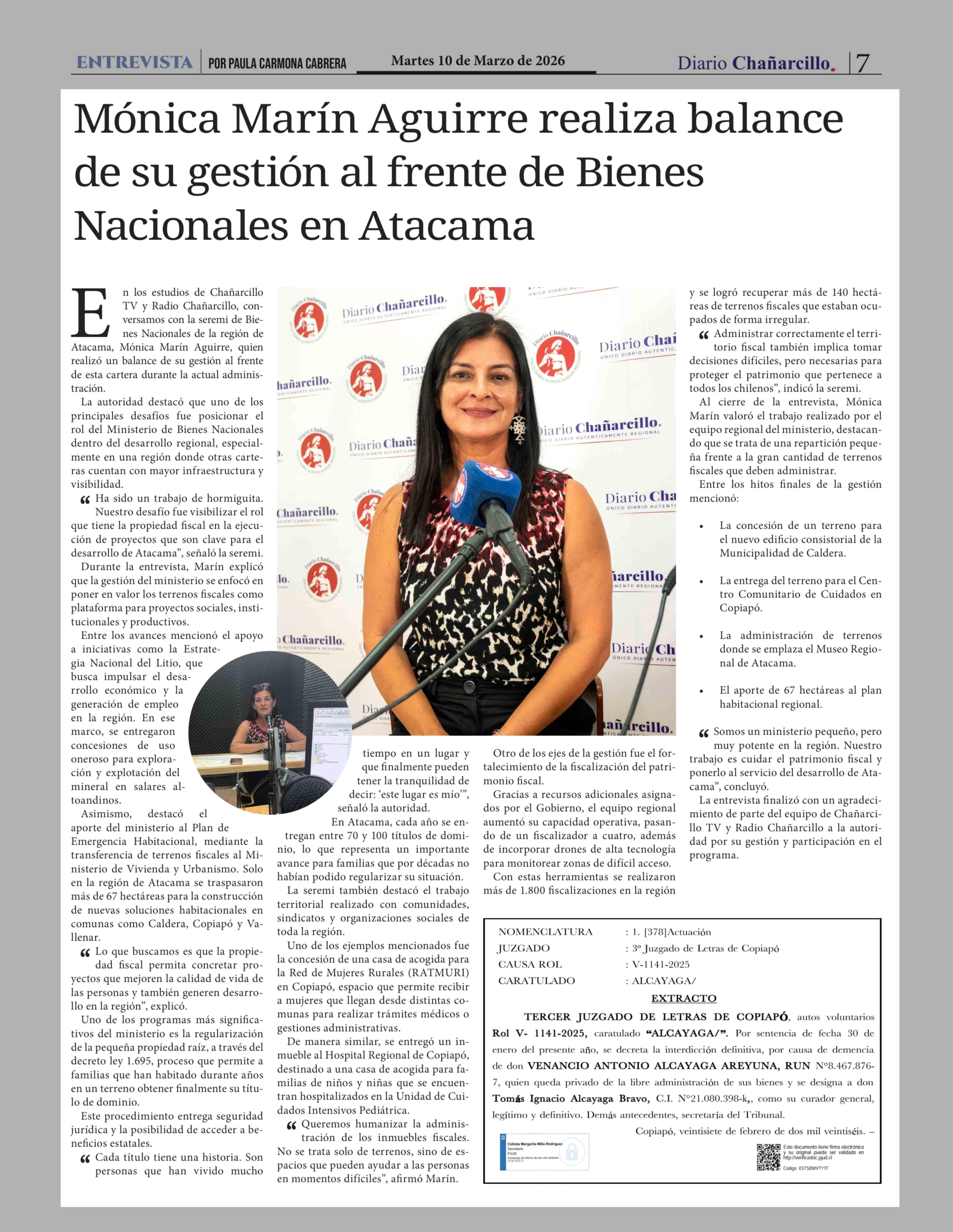 Mónica Marín Aguirre realiza balance de su gestión al frente de Bienes Nacionales en Atacama 10-03-2026 Diario Chañarcillo |
