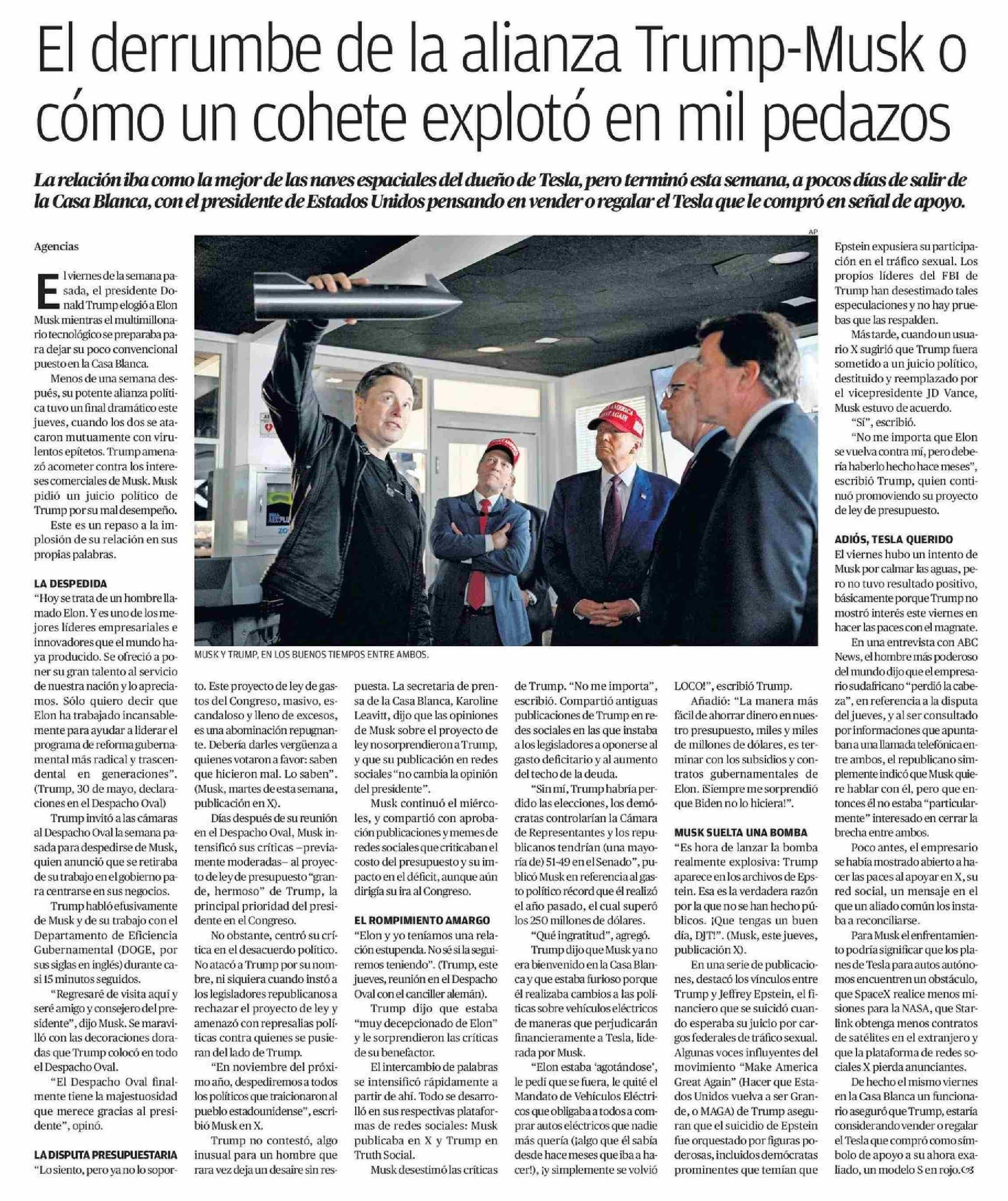El derrumbe de la alianza Trump-Musk o cómo un cohete explotó en mil pedazos 08-06-2025 El Mercurio de Antofagasta |