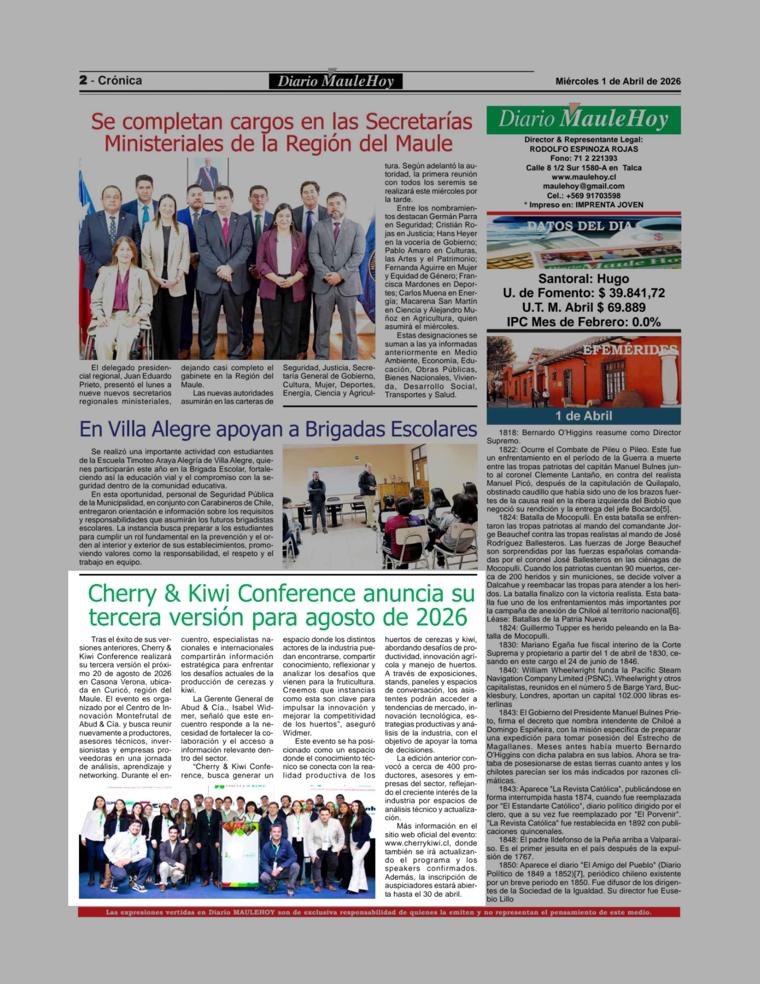Fecha: 01-04-2026 Sector: Noticia general Región: Región del Maule
