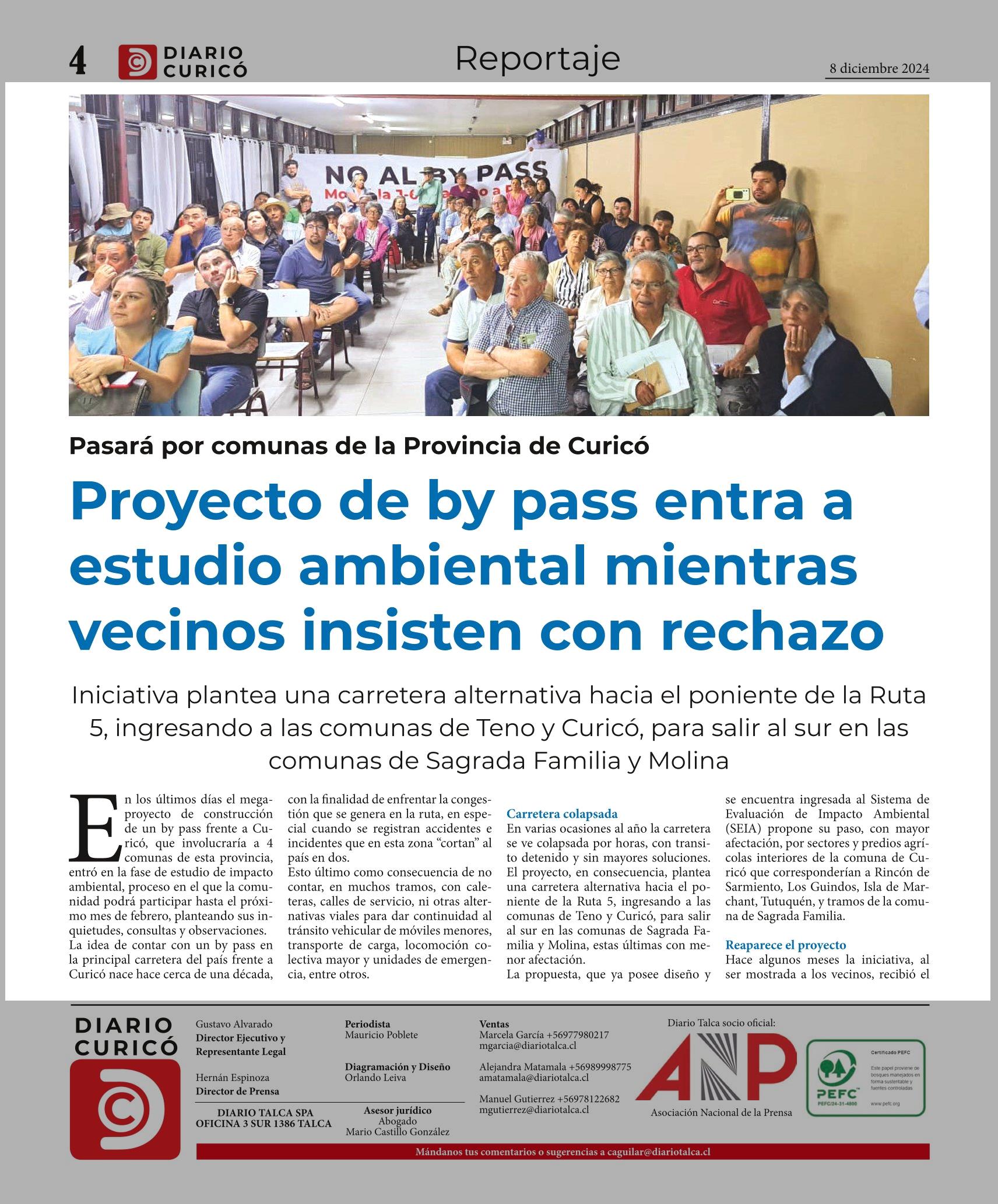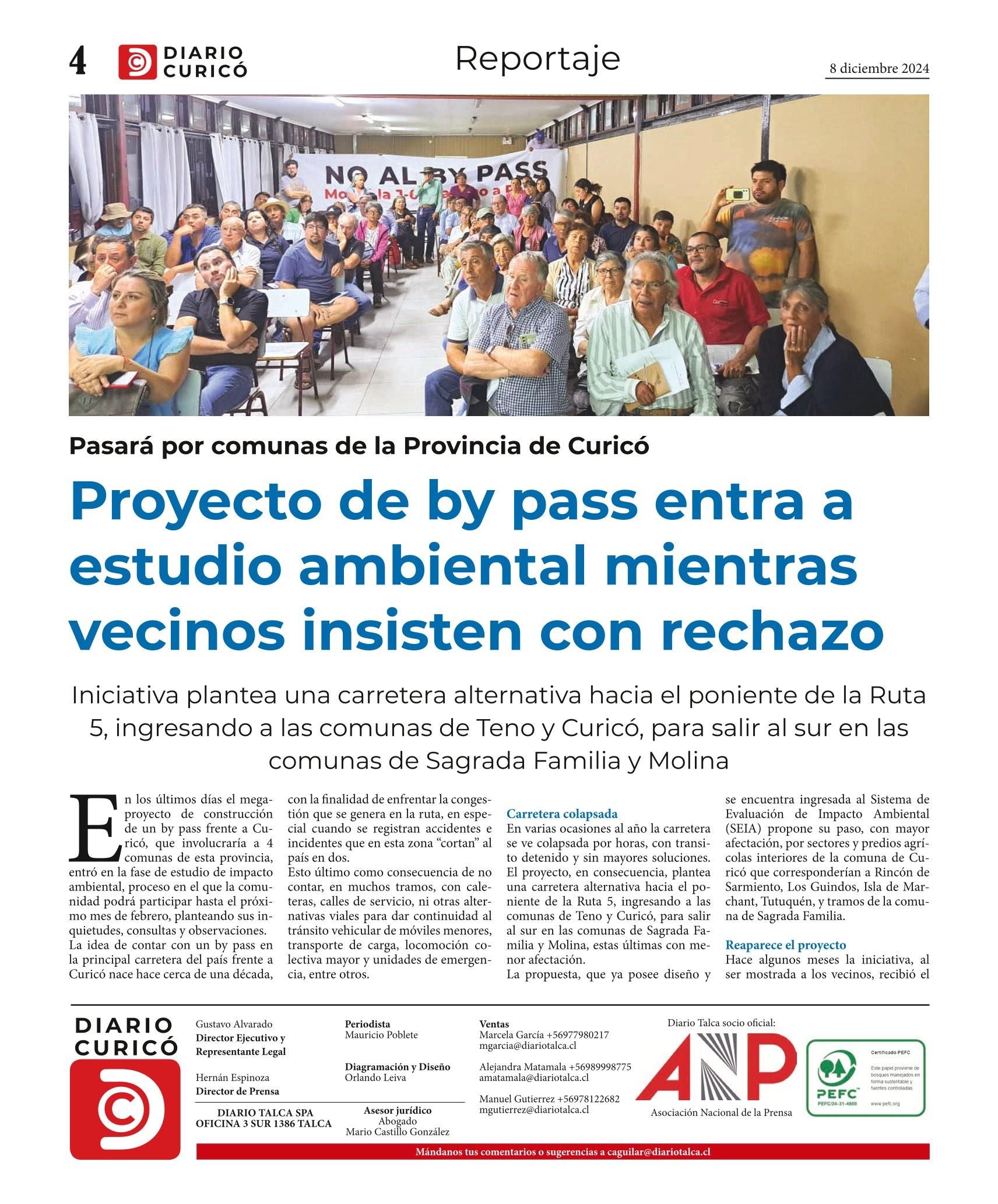 Proyecto de by pass entra a estudio ambiental mientras vecinos insisten con rechazo 09-12-2024 Diario Talca |