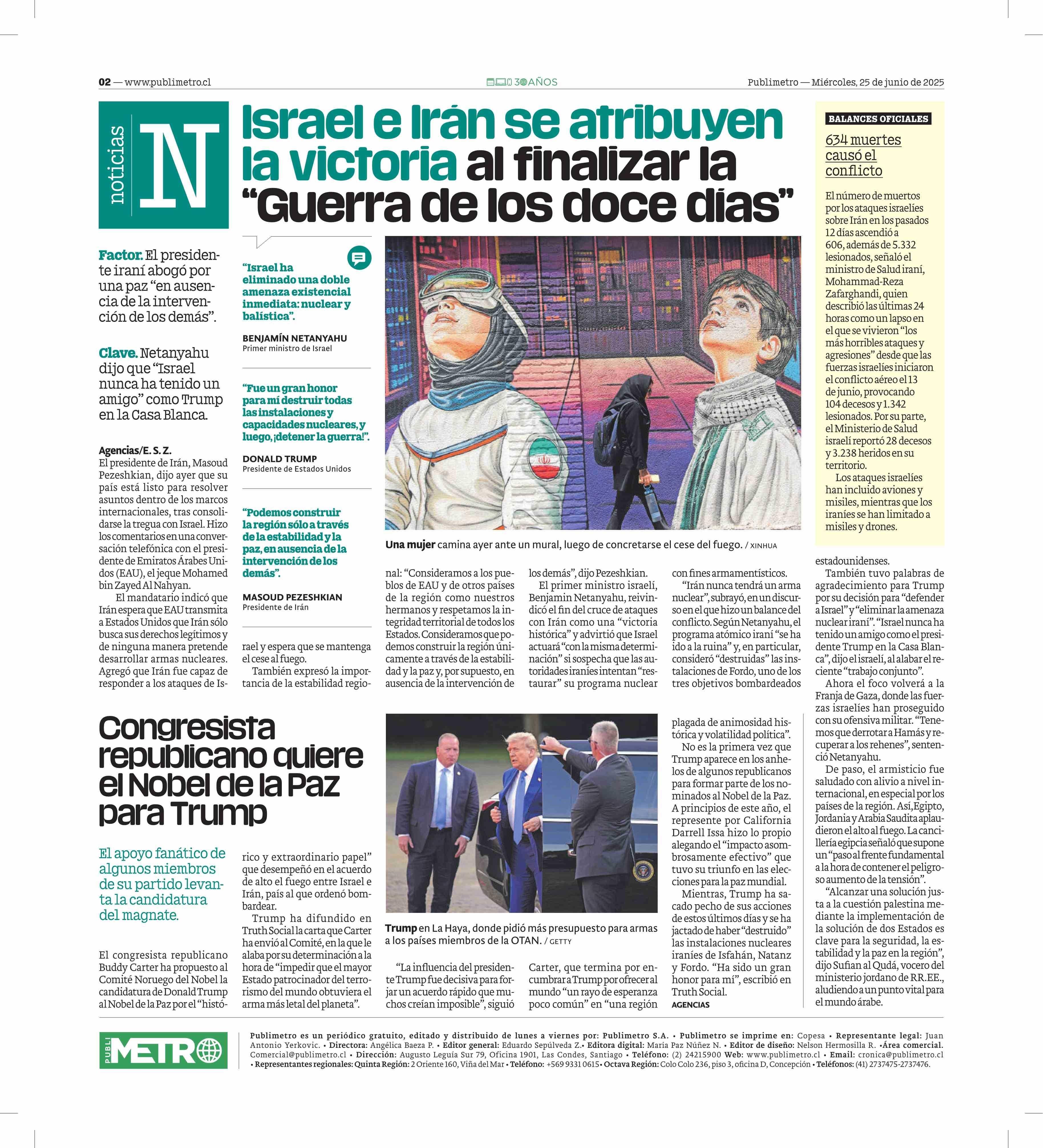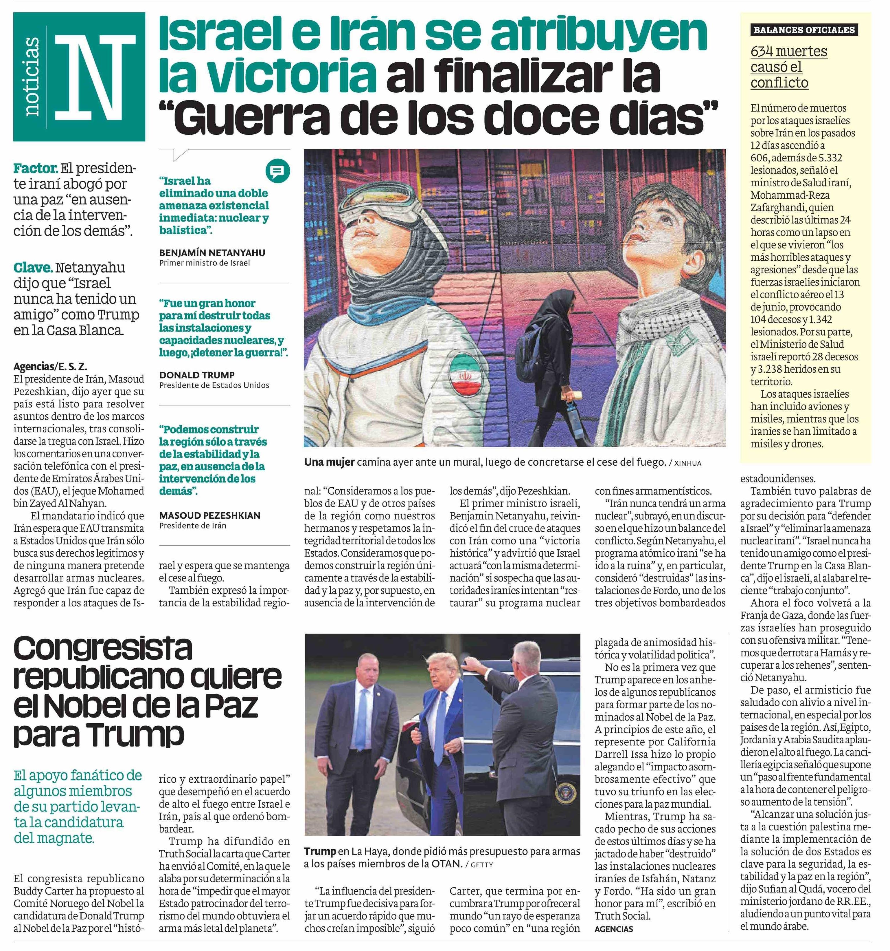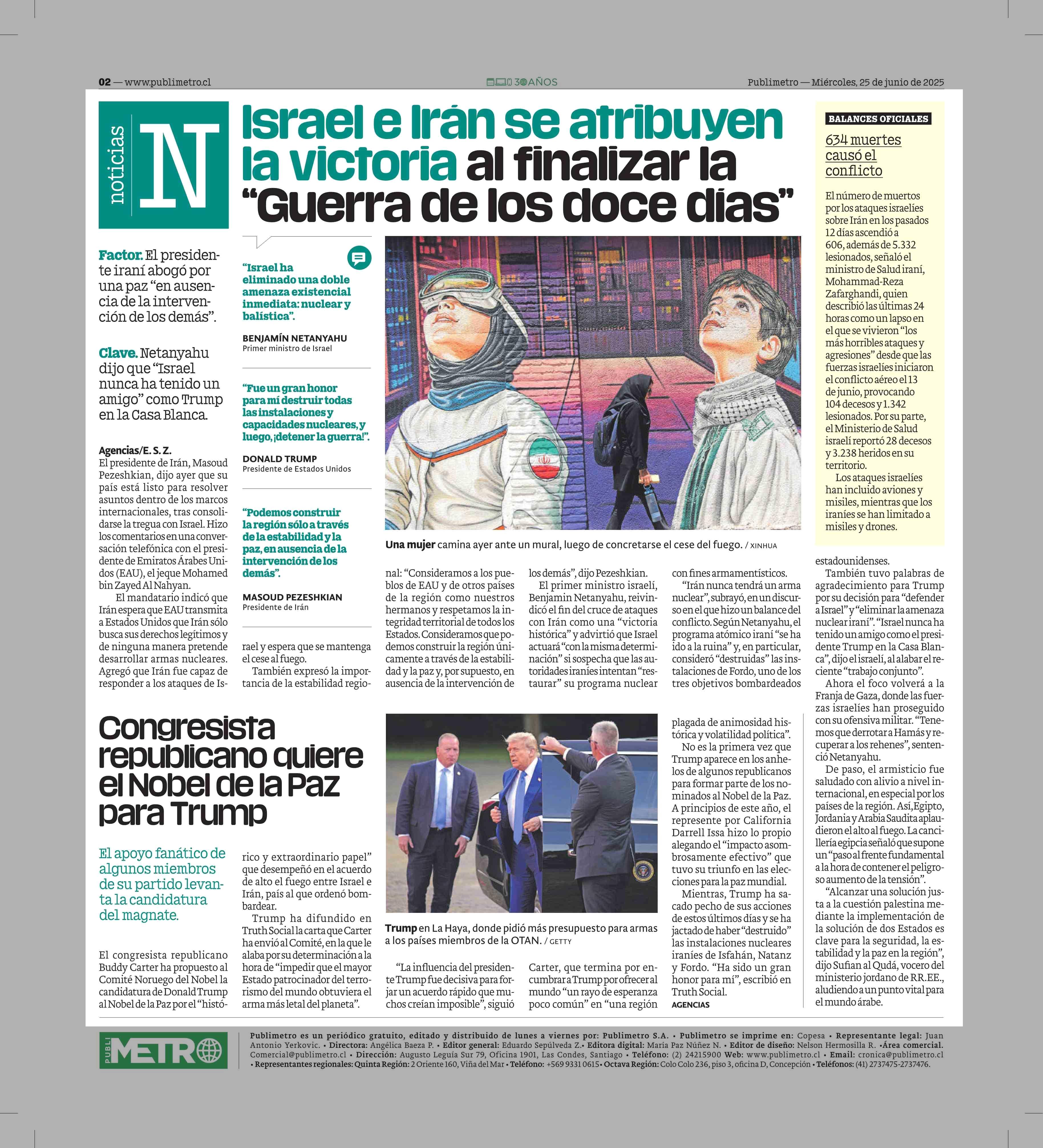 Israel e Irán se atribuyen la victoria al finalizar la "Guerra de los doce dias" 25-06-2025 Publimetro |