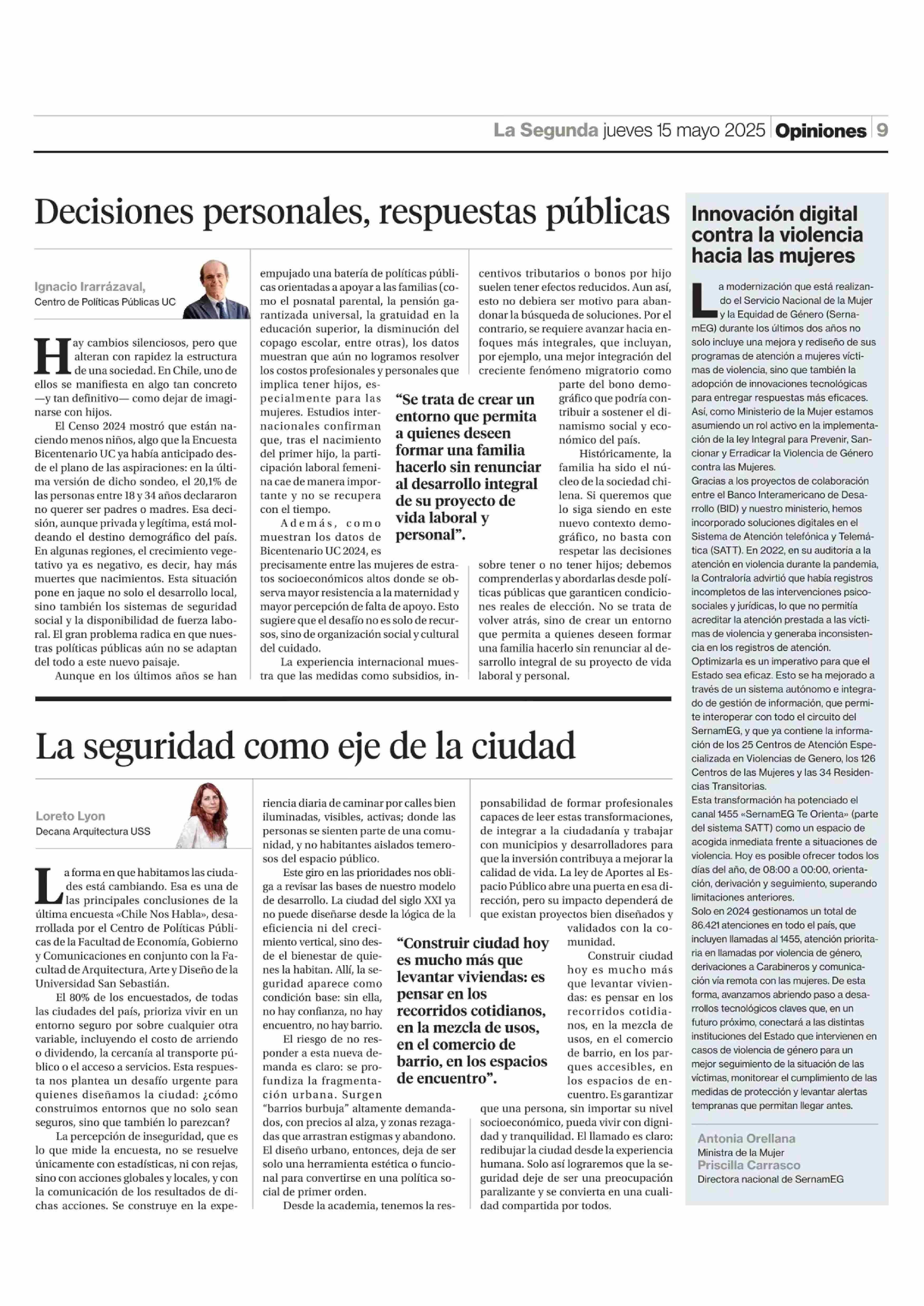 COLUMNAS DE OPINIÓN: Decisiones personales, respuestas públicas 15-05-2025 La Segunda |