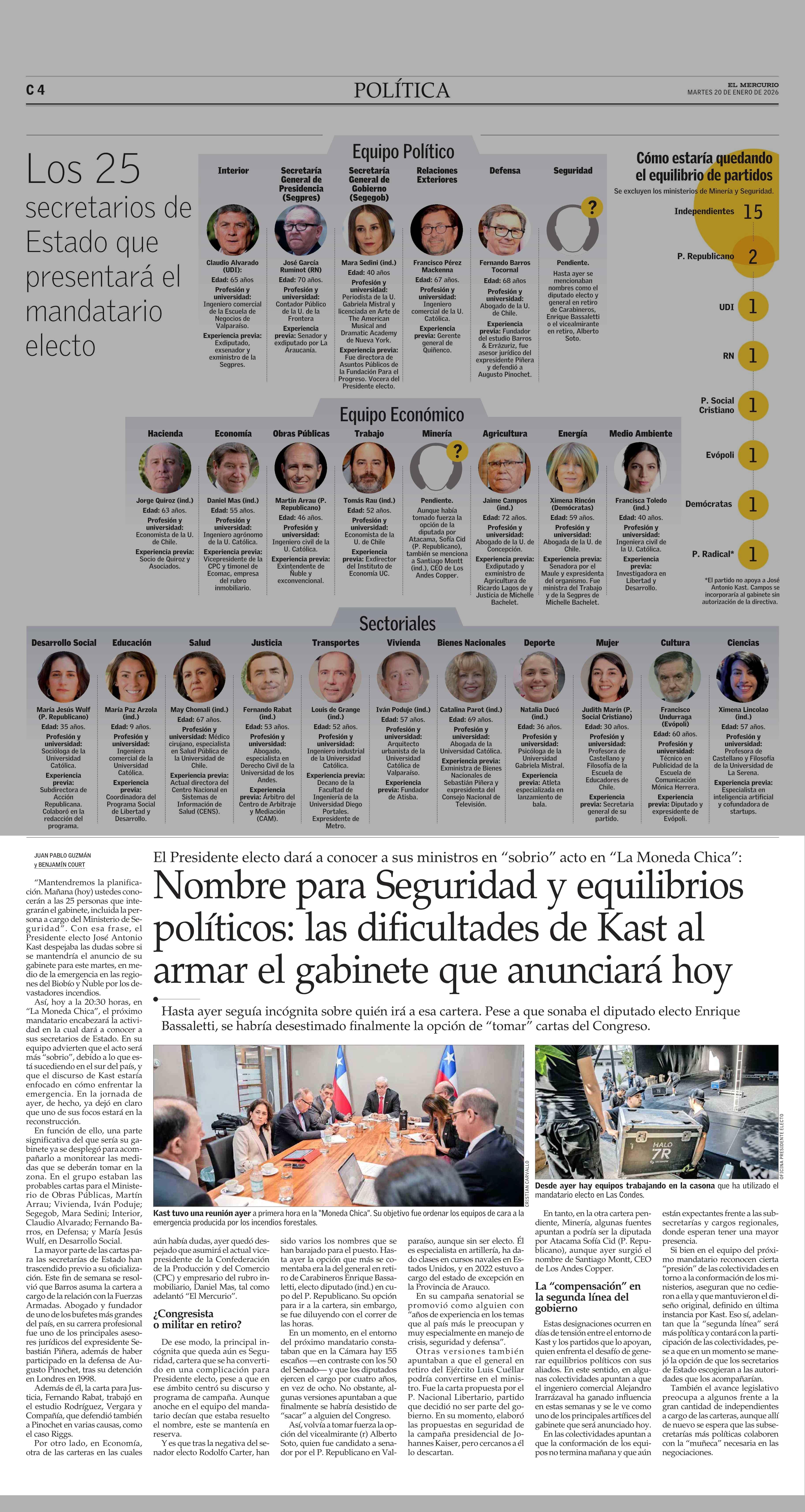 Nombre para Seguridad y equilibrios políticos: las dificultades de Kast al armar el gabinete que anunciará hoy 20-01-2026 El Mercurio |