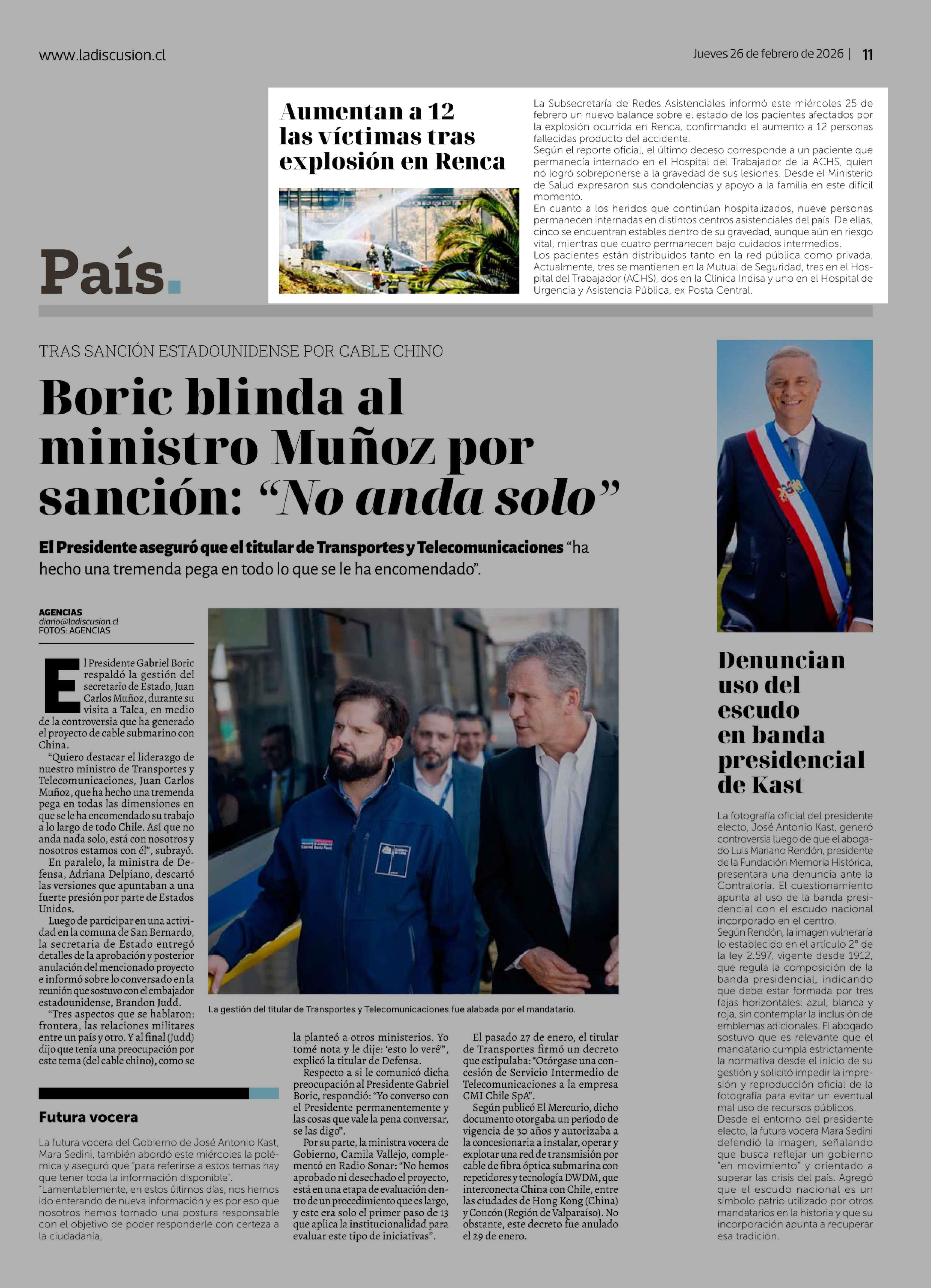 Aumentan a 12 las víctimas tras explosión en Renca 26-02-2026 La Discusión |
