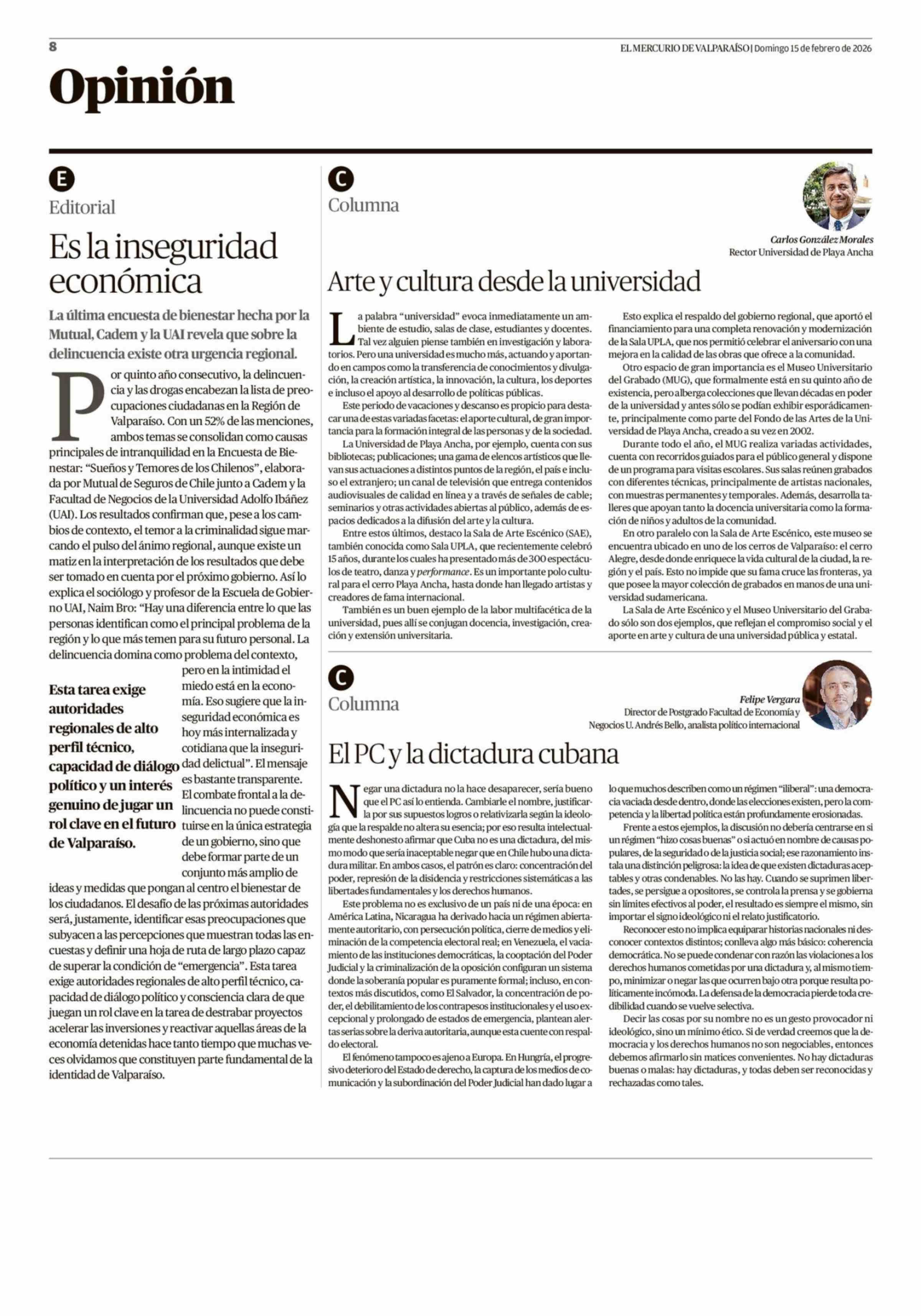 Columnas de Opinión: Arte y cultura desde la universidad 15-02-2026 El Mercurio de Valparaíso |