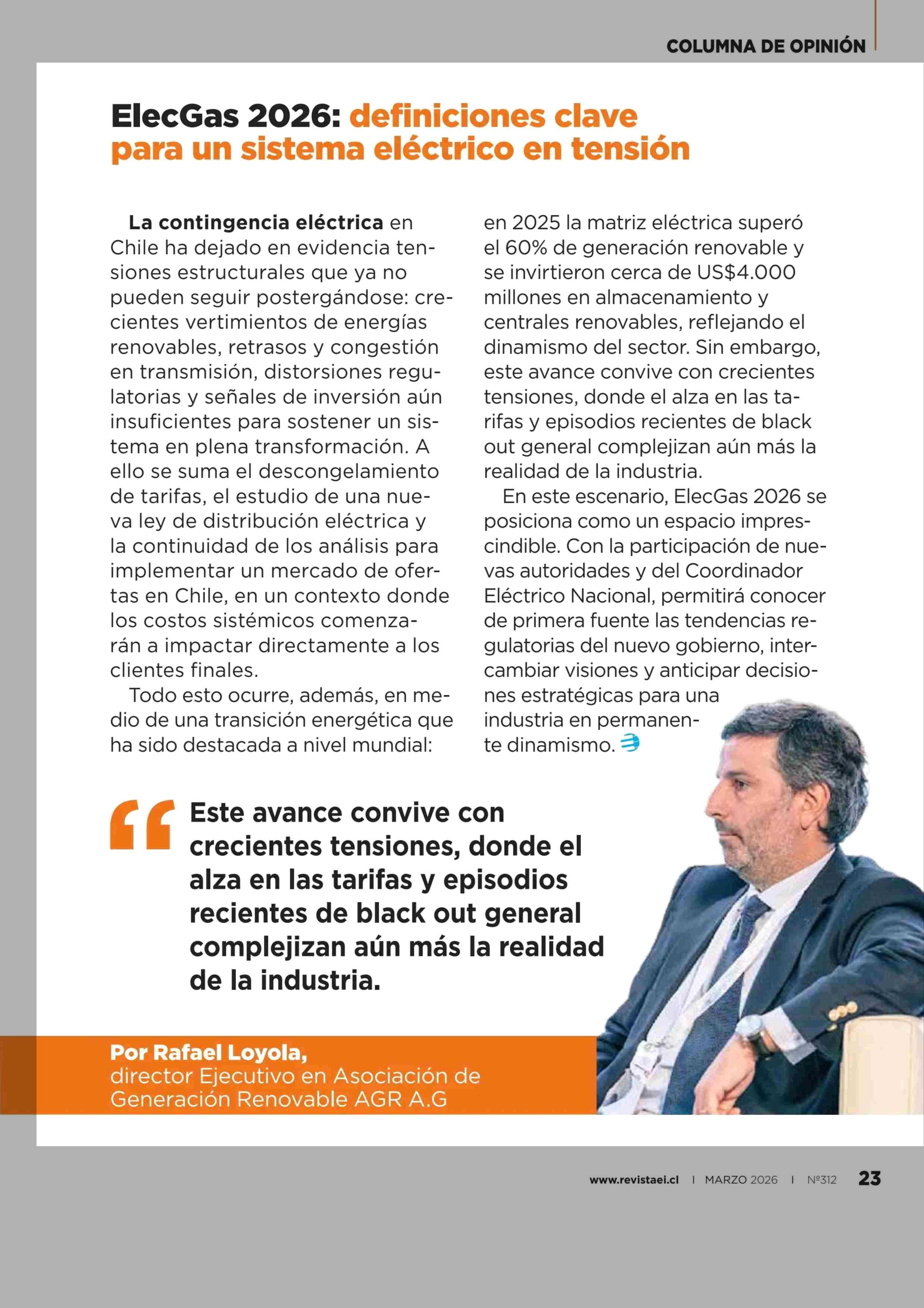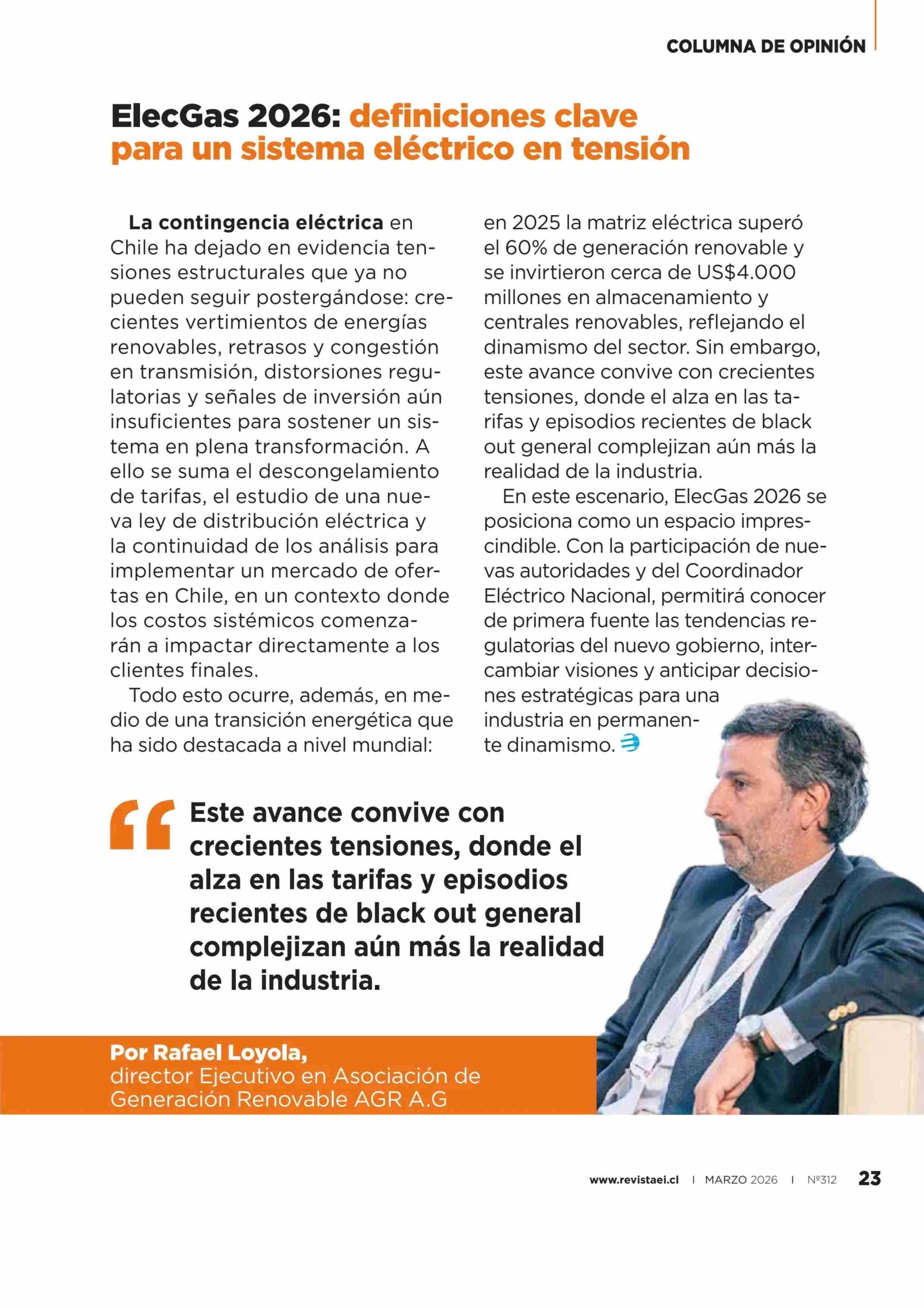 ElecGas 2026: definiciones clave para un sistema eléctrico en tensión 26-03-2026 Revista Electricidad |
