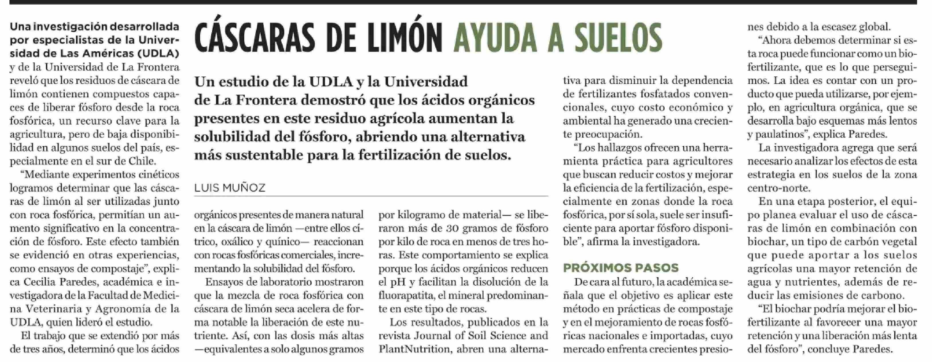 CÁSCARAS DE LIMÓN AYUDA A SUELOS 02-03-2026 El Mercurio |