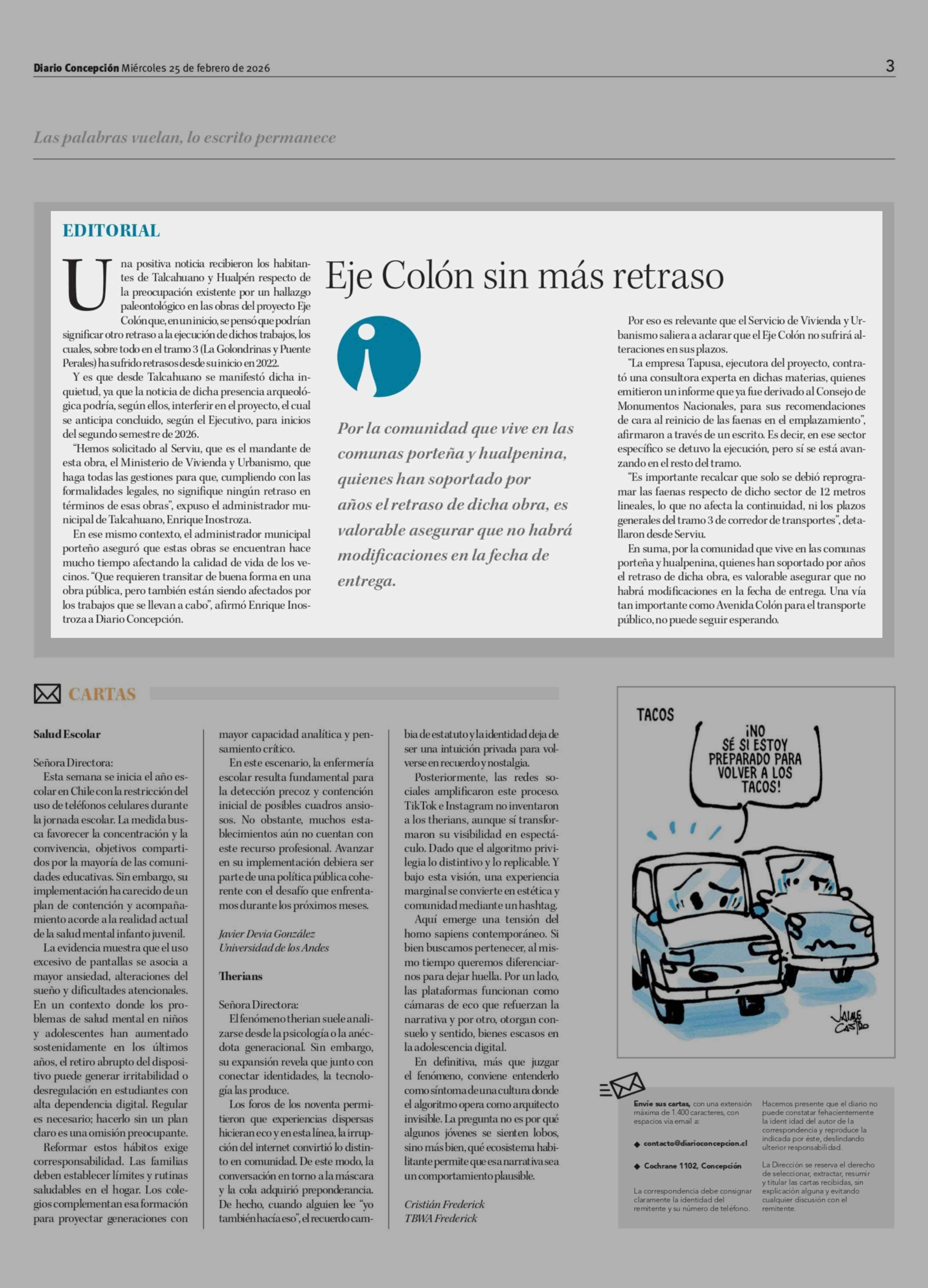 Editorial: Eje Colón sin más retraso 25-02-2026 Diario Concepción |