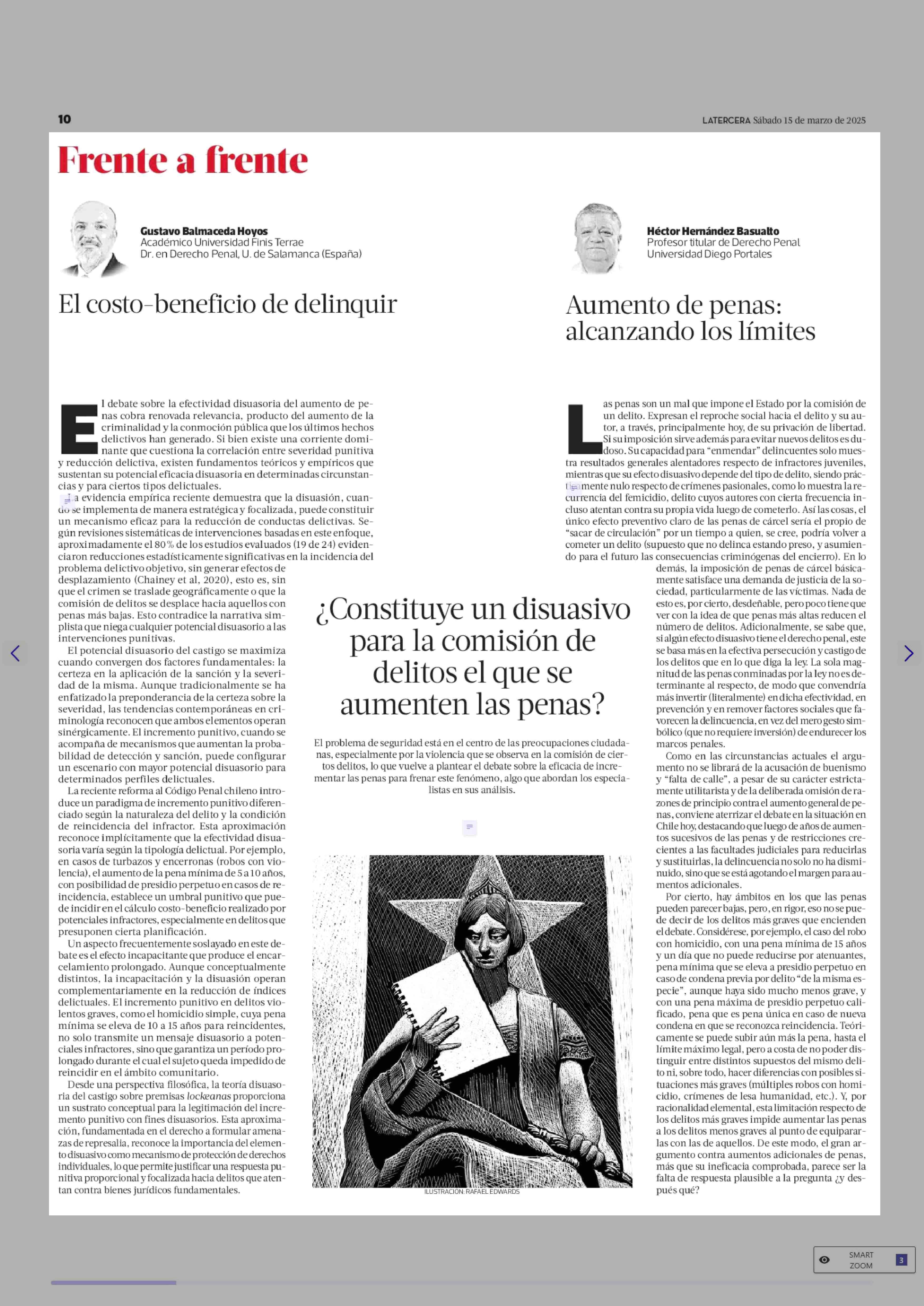 ¿Constituye un disuasivo para la comisión de delitos el que se aumenten las penas? 15-03-2025 La Tercera |