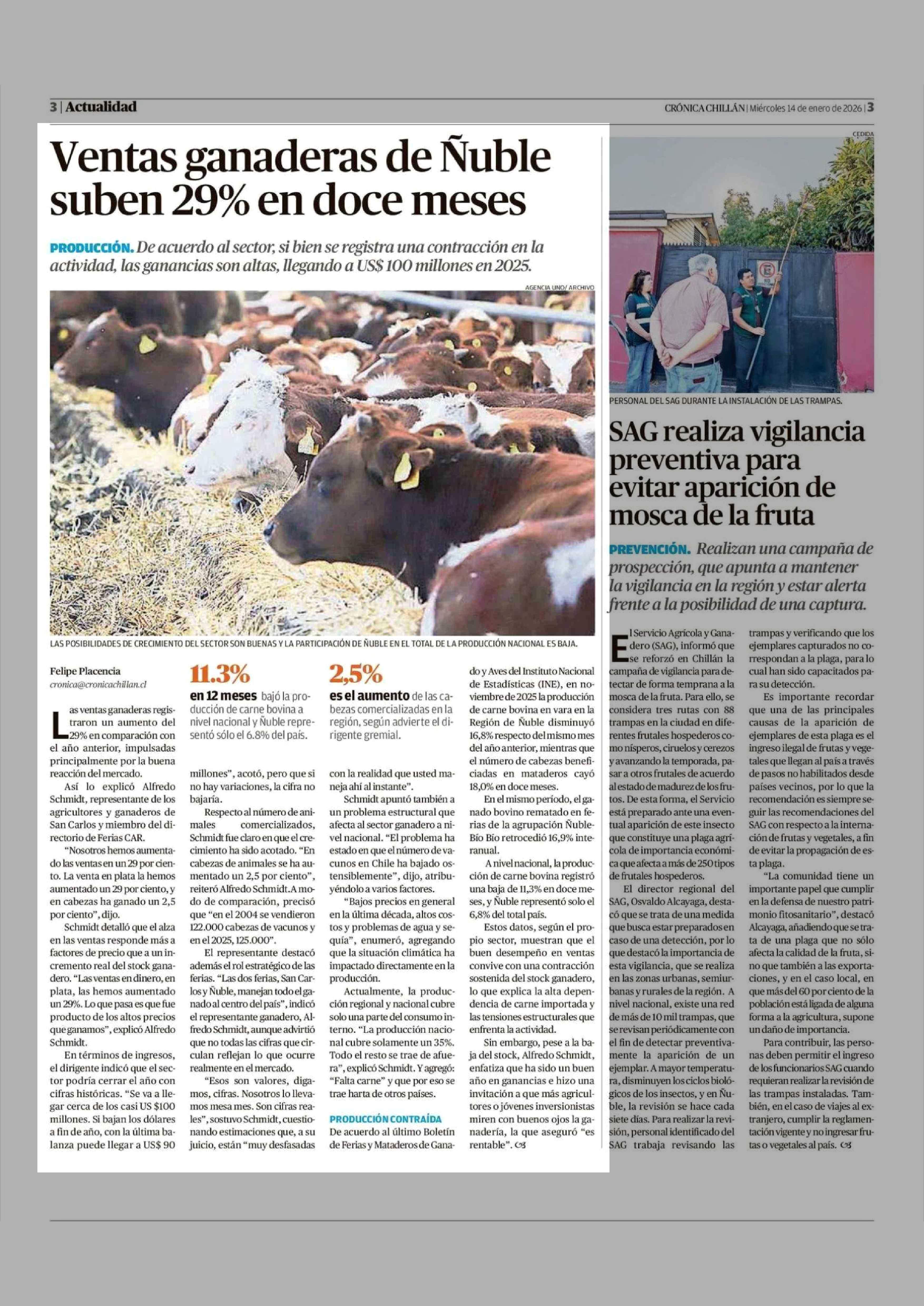 Título: Ventas ganaderas de Ñuble suben 29% en doce meses