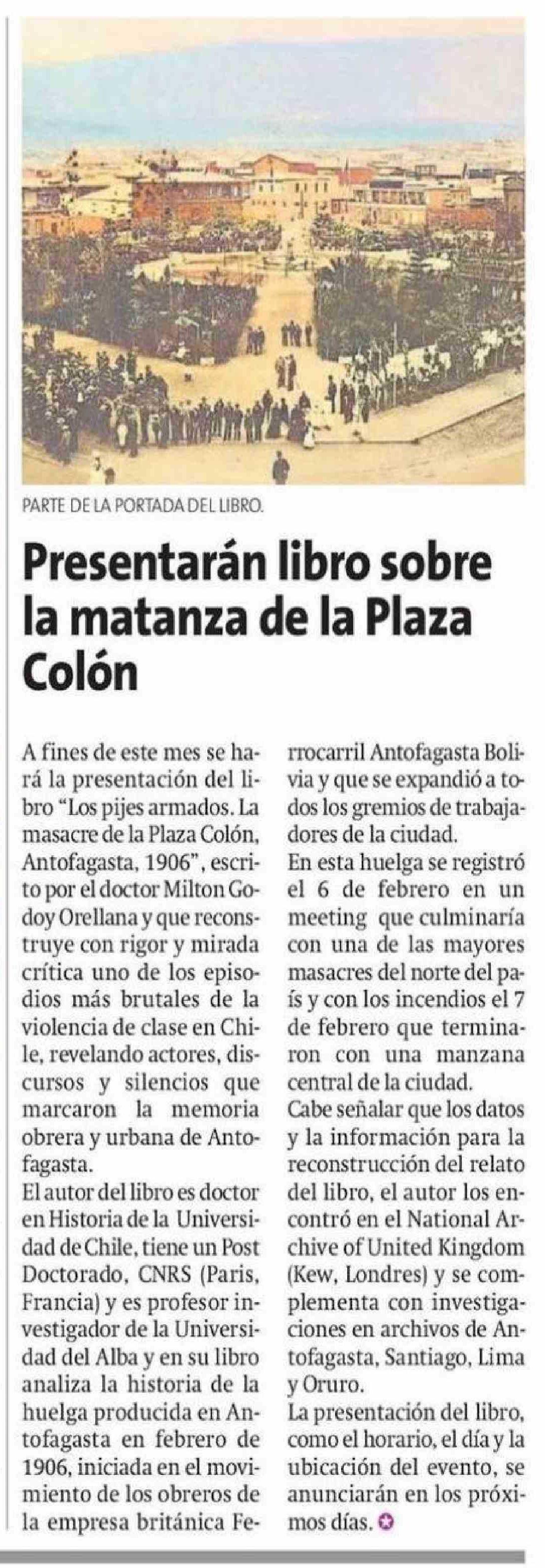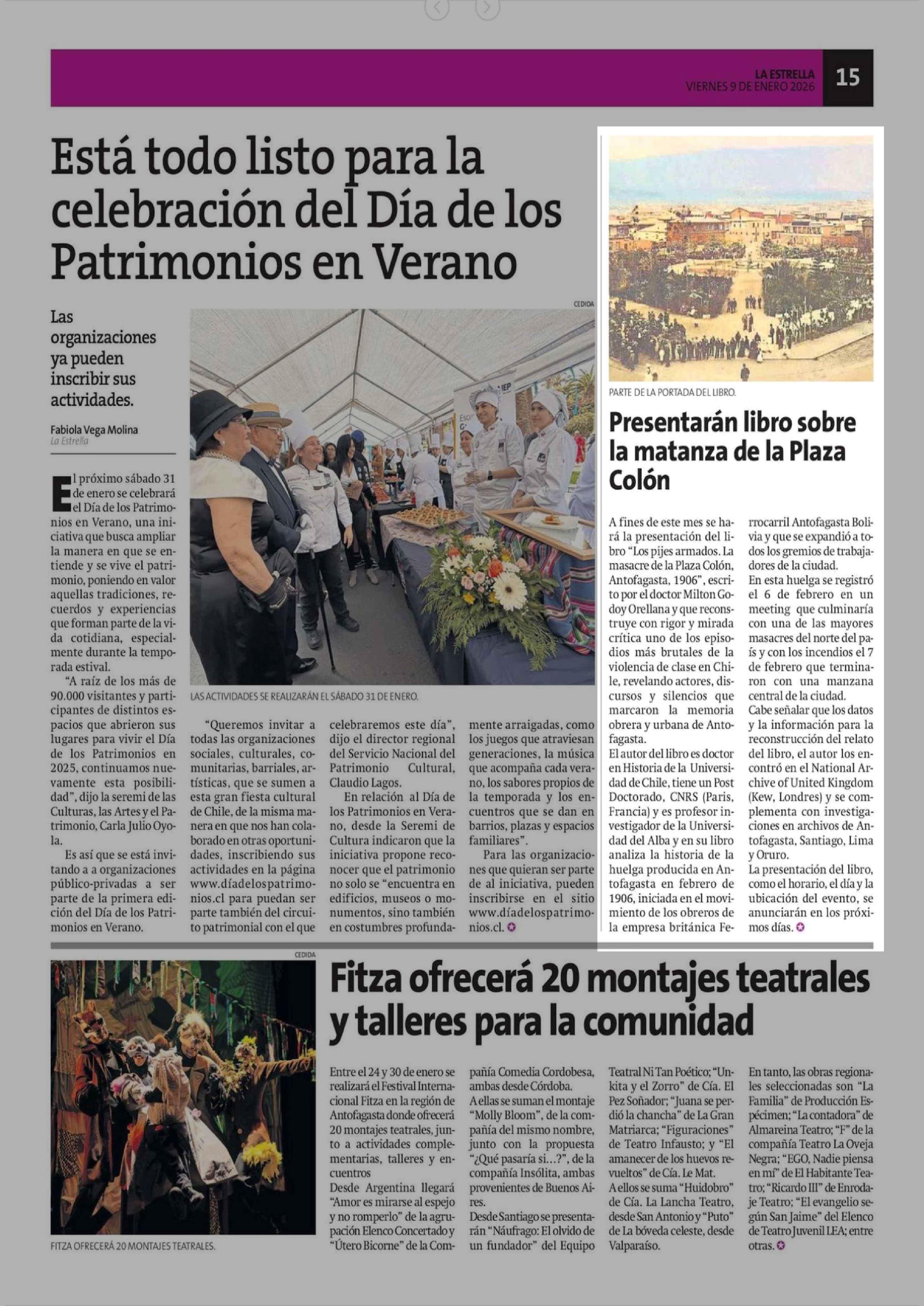 Presentarán libro sobre la matanza de la Plaza Colón 09-01-2026 La Estrella de Antofagasta |