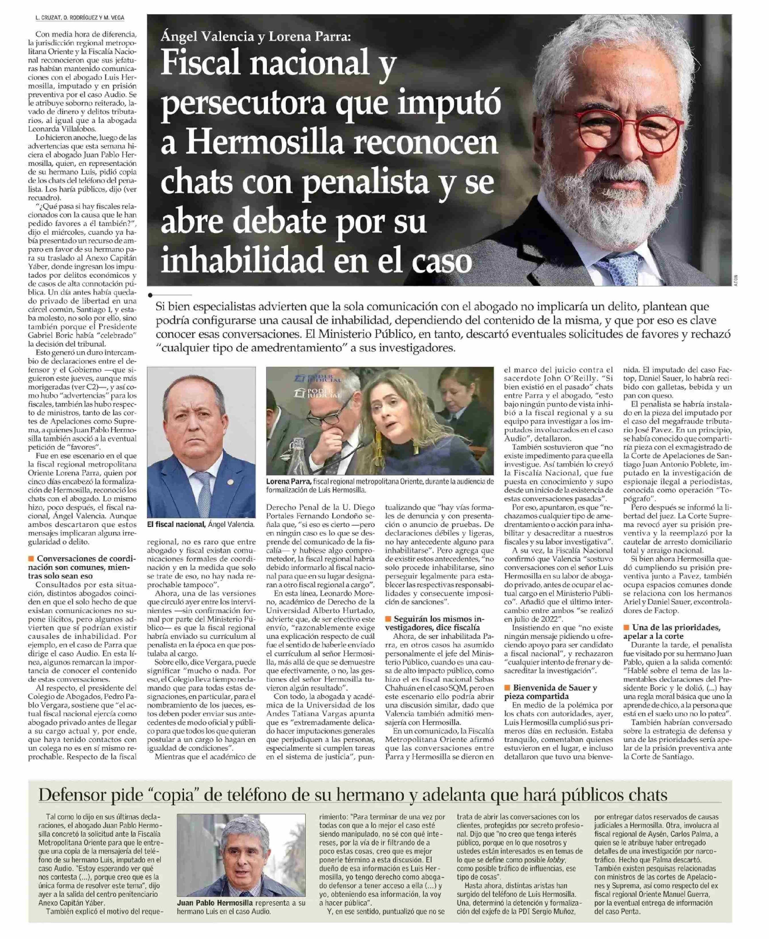 Título: Fiscal nacional y persecutora que imputó a Hermosilla reconocen chats con penalista y se abre debate por su inhabilidad en el caso