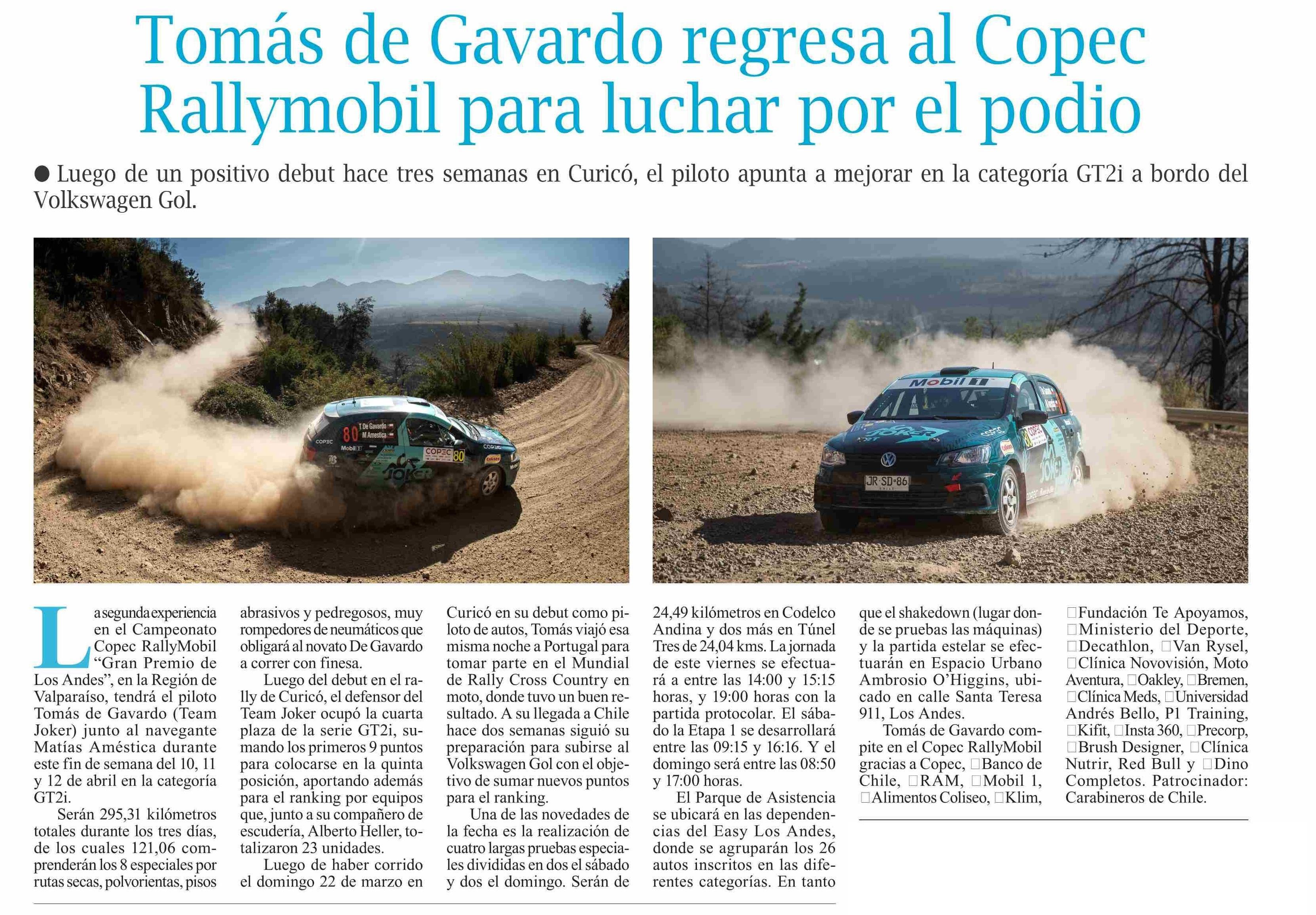 | Título: | Tomás de Gavardo regresa al Copec Rallymobil para luchar por el podio |