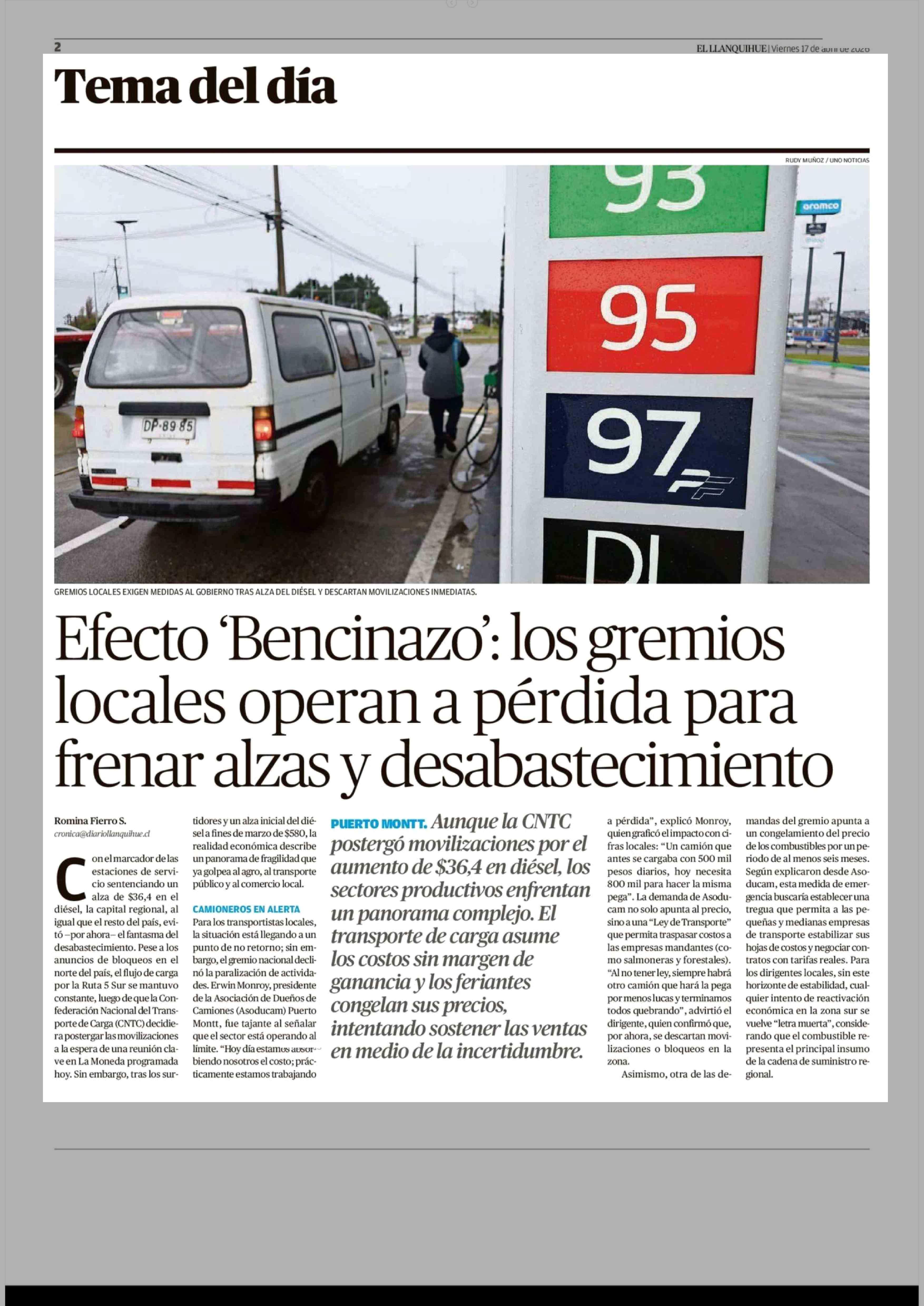Título: Efecto 'Bencinazo' los gremios locales operan a pérdida para frenar alzas y desabastecimiento