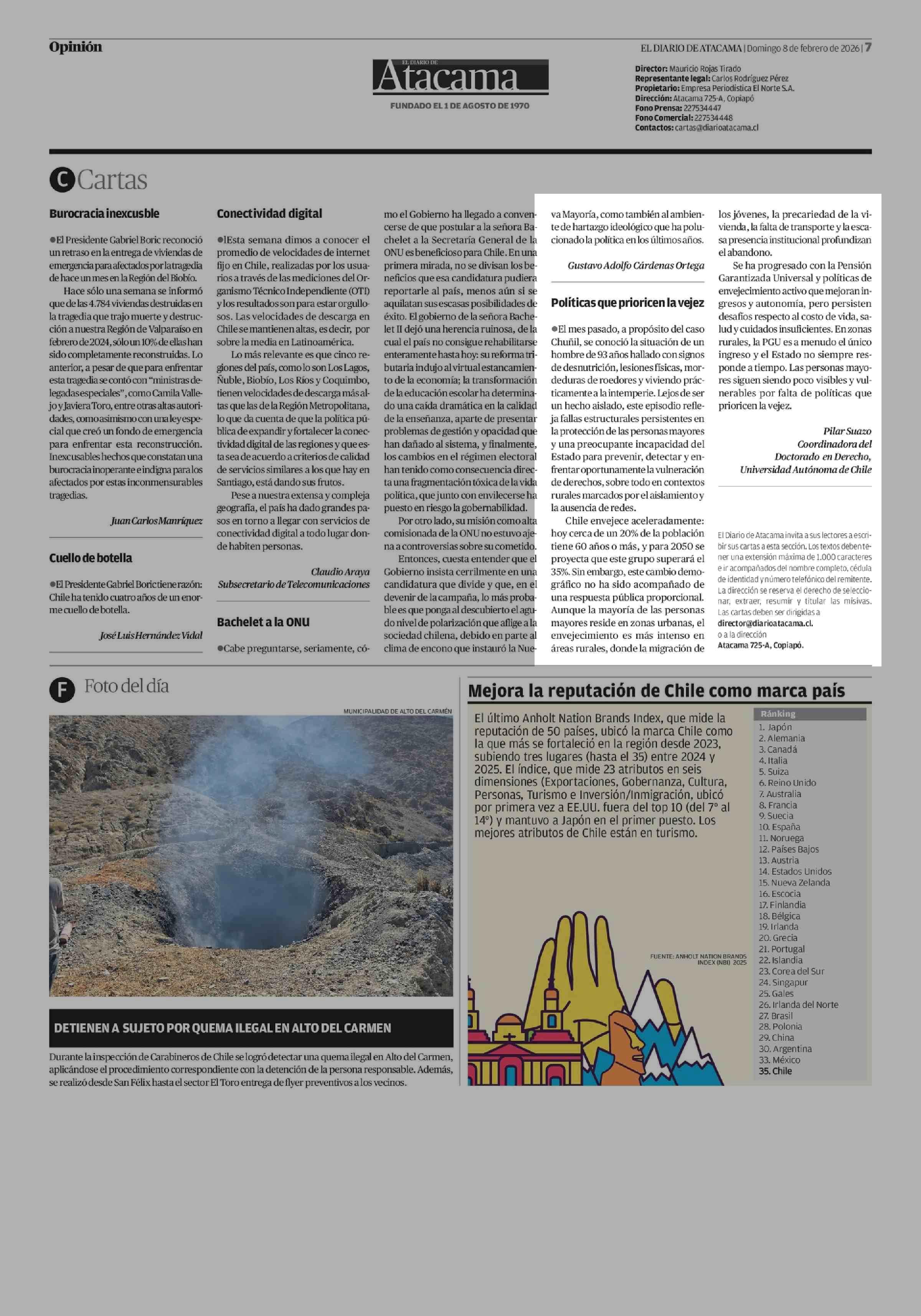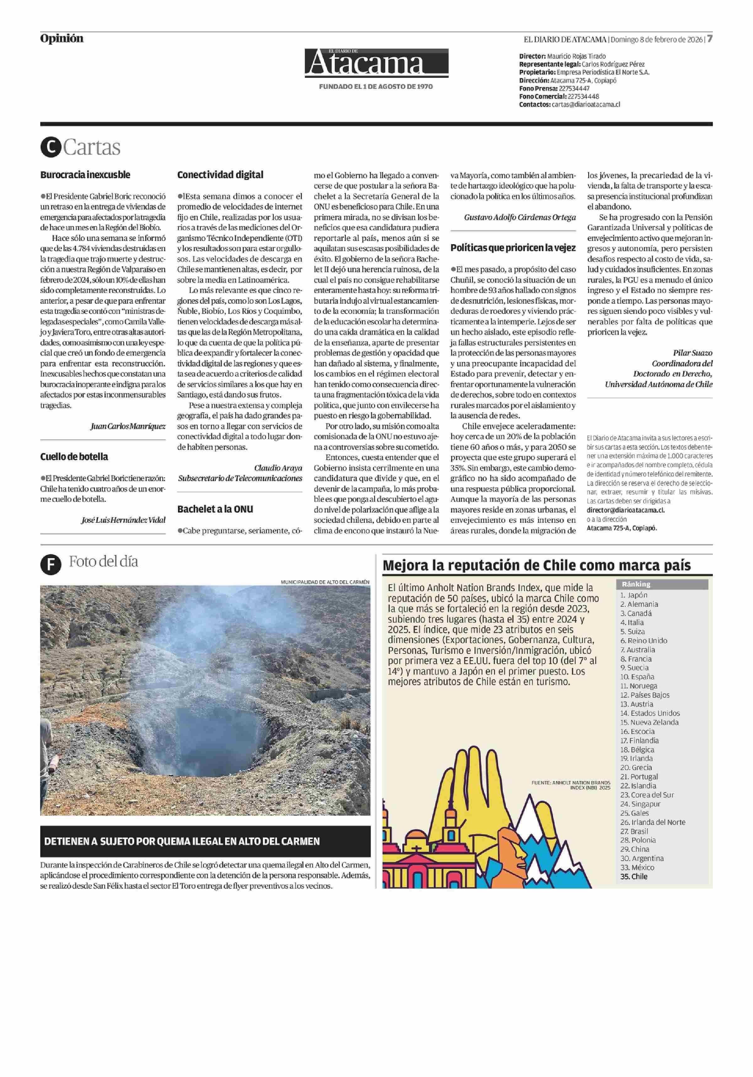 Cartas: Políticas que prioricen la vejez 08-02-2026 El Diario de Atacama |