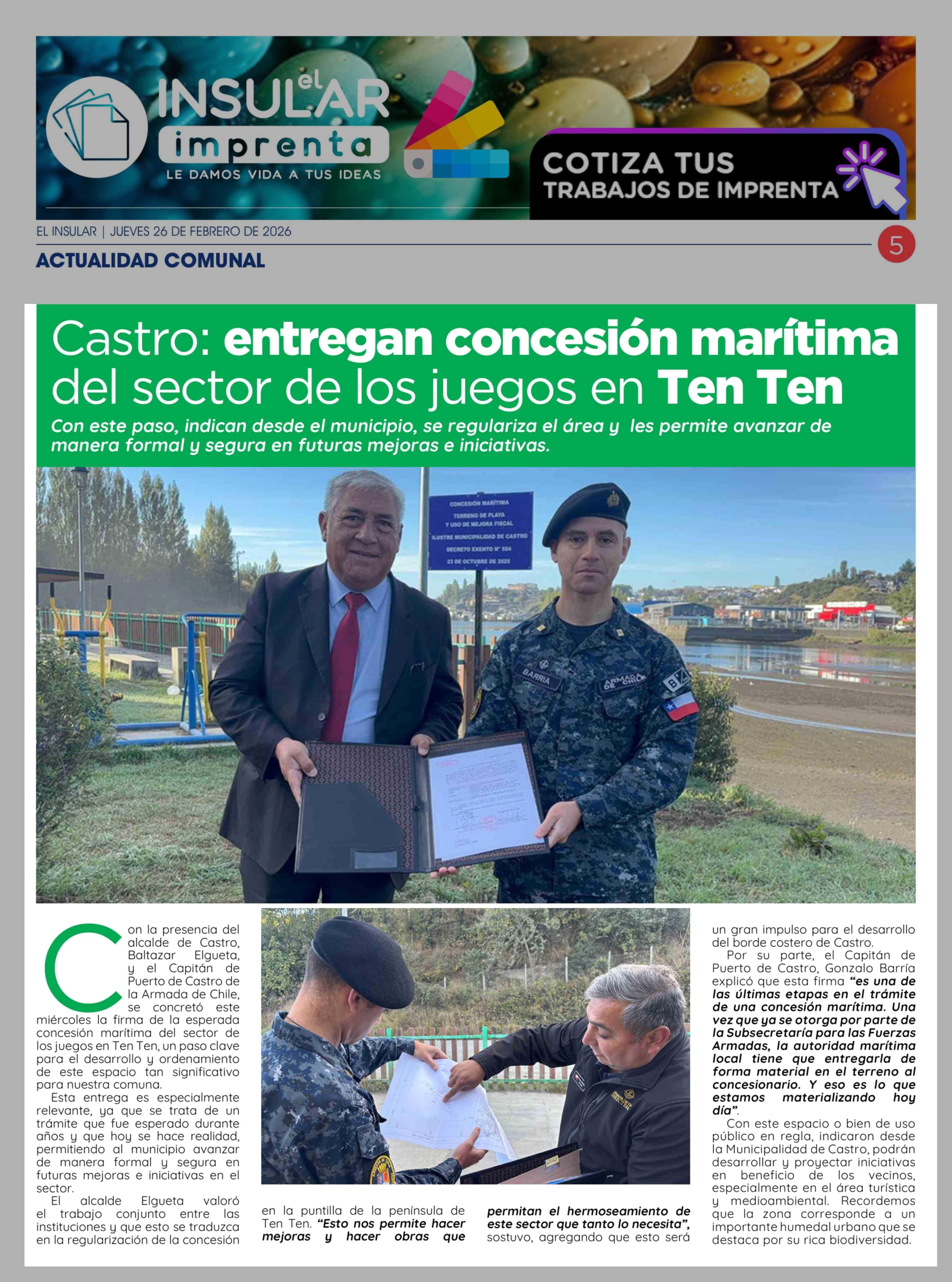 Castro: entregan concesión marítima del sector de los juegos en Ten Ten 26-02-2026 El Insular |