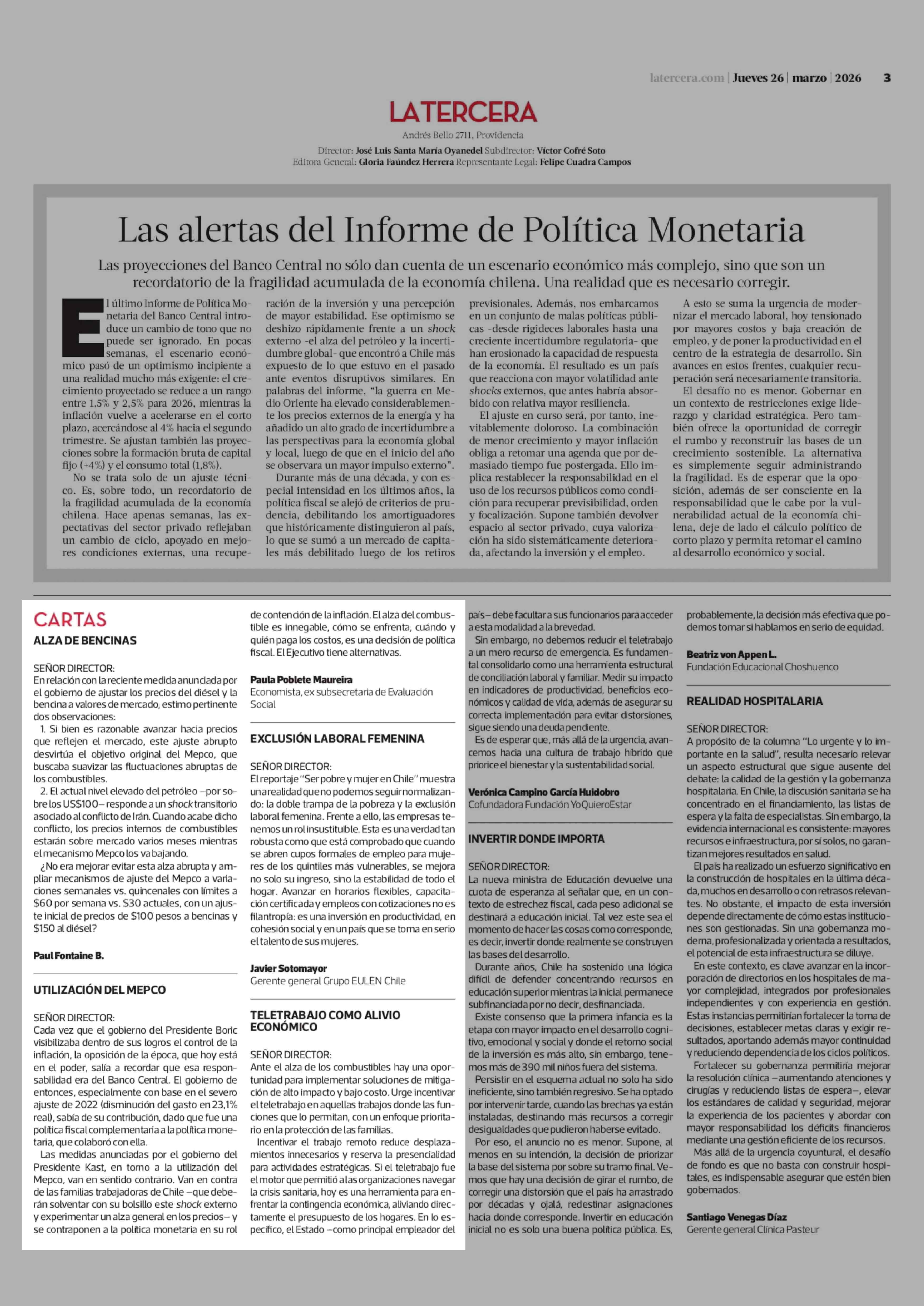 Cartas: UTILIZACIÓN DEL MEPCO 26-03-2026 La Tercera |