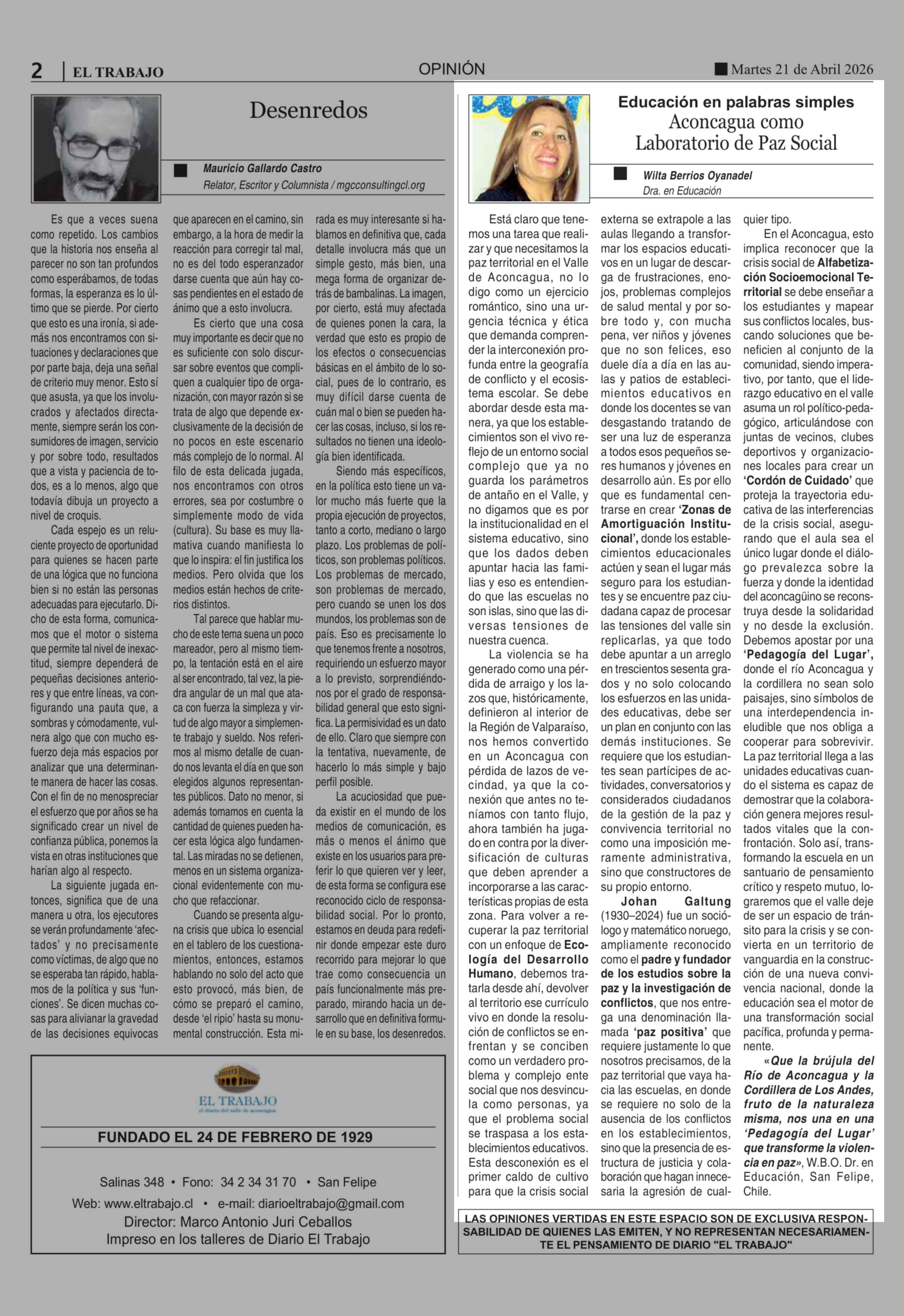 Fecha: 21-04-2026 Sector: Columnas de Opinión Región: Región de Valparaíso