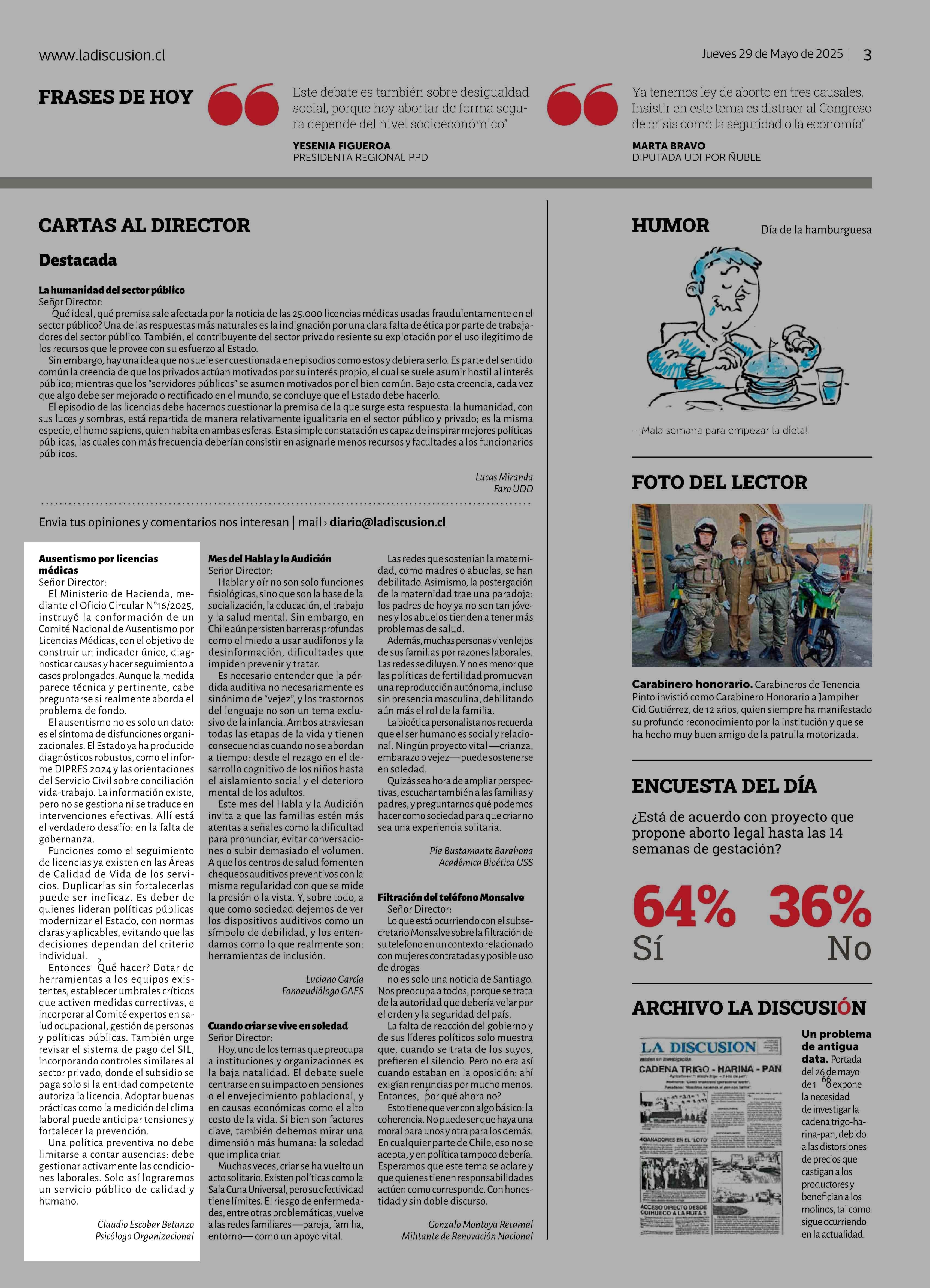 CARTAS: Ausentismo por licencias médicas 29-05-2025 La Discusión |