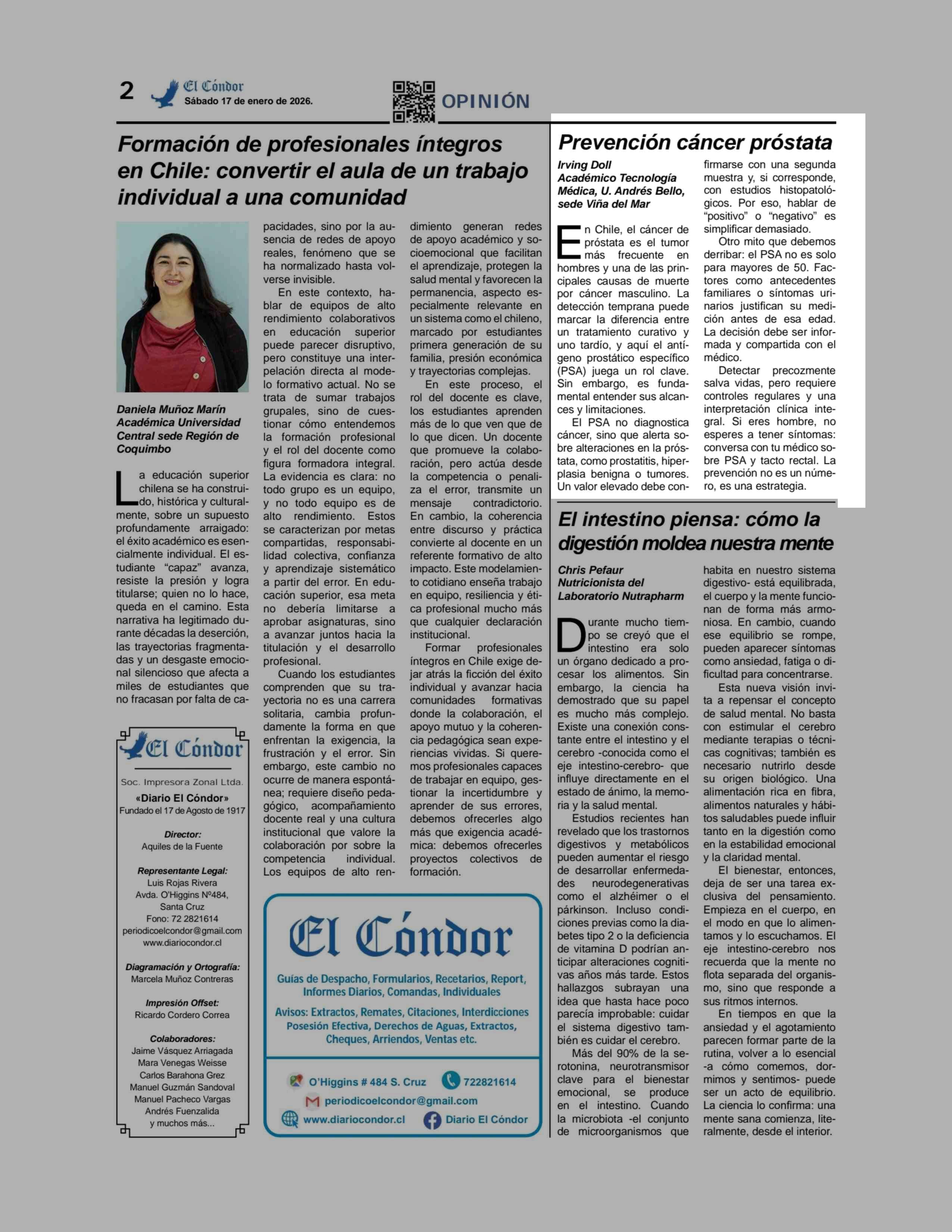 COLUMNAS DE OPINIÓN: Prevención cáncer próstata 17-01-2026 Diario El Cóndor |
