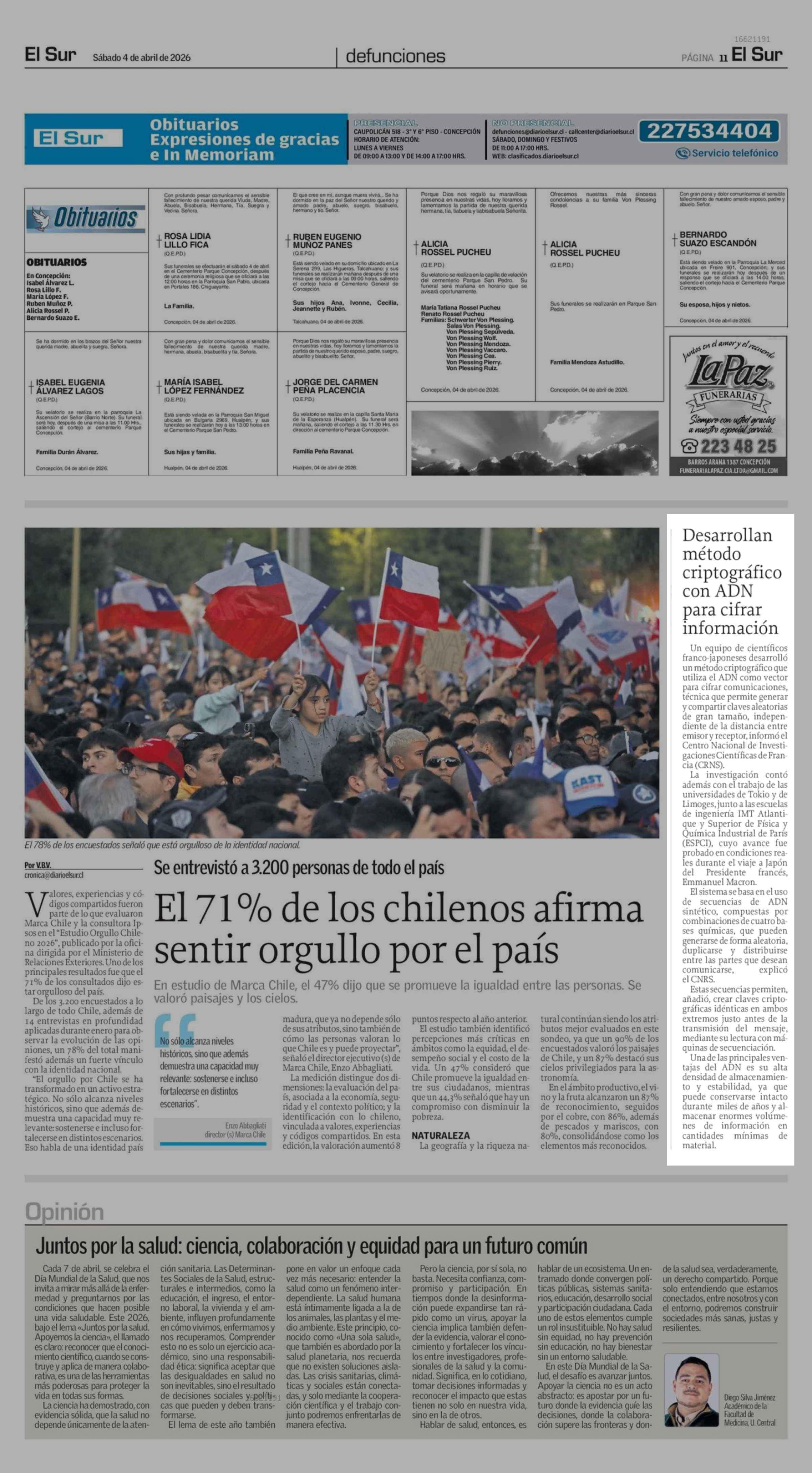 Desarrollan método criptográfico con ADN para cifrar información 04-04-2026 El Sur |