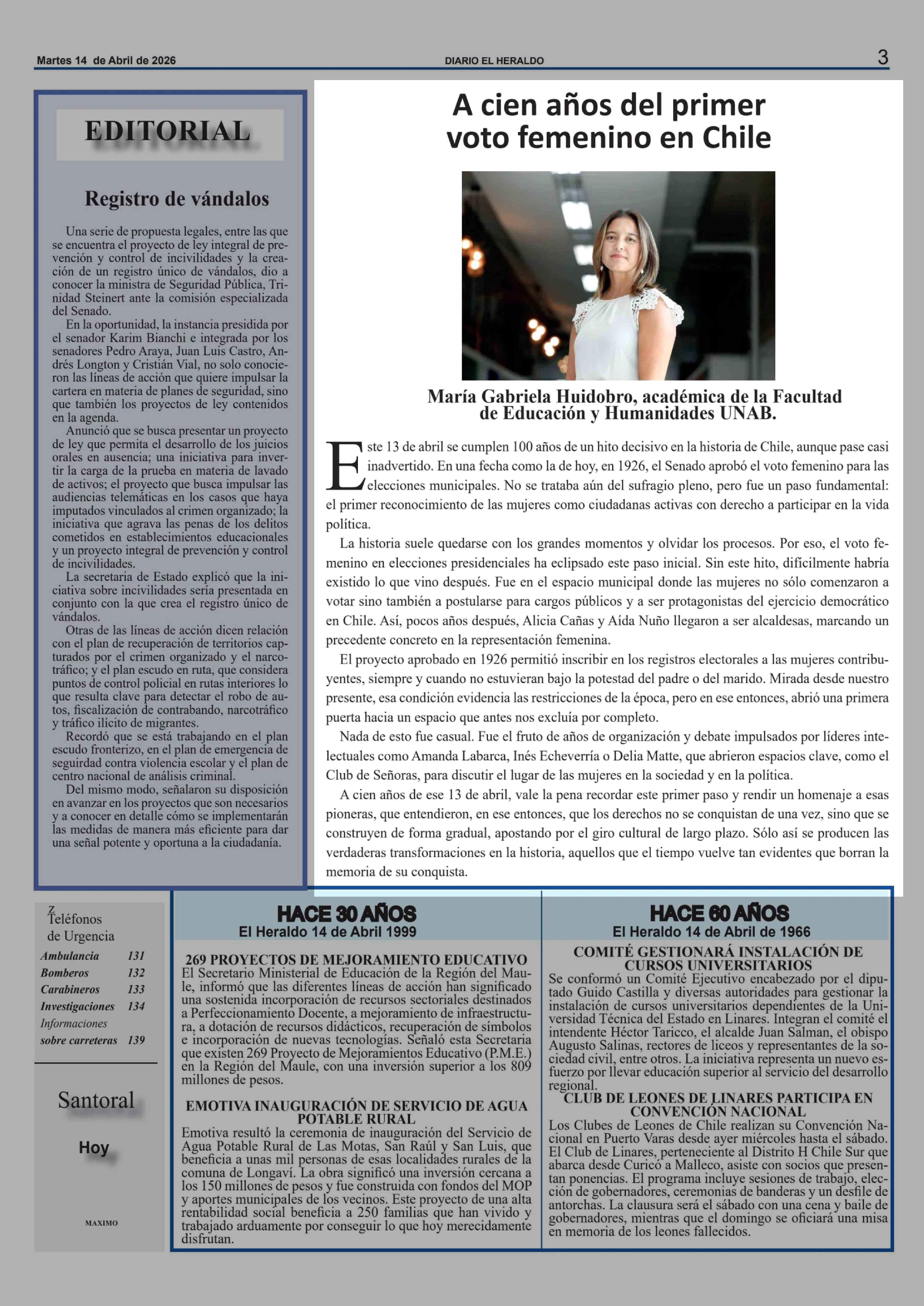 Fecha: 14-04-2026 Sector: Columnas de Opinión Región: Región del Maule