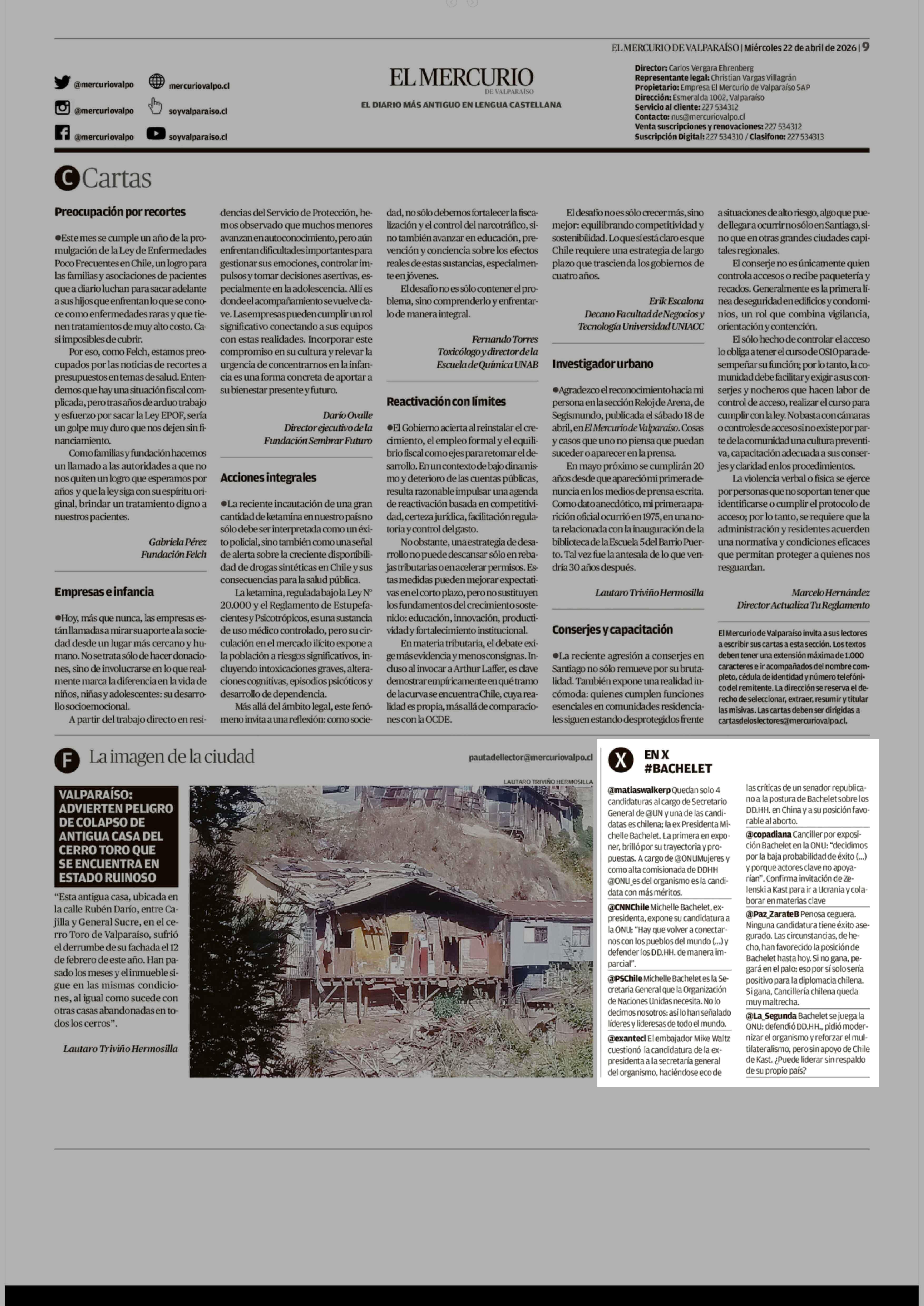 EN X #BACHELET 22-04-2026 El Mercurio de Valparaíso |